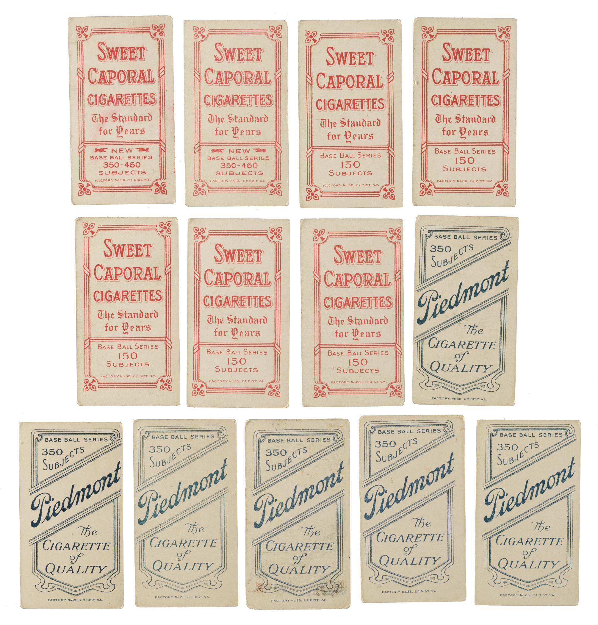 Collection of thirteen 1909-1911 T206 White Border Cleveland Naps baseball cards. Condition is Vg overall, including a couple lesser. This collection consists of the following: Ball/Cleveland, Berger, Birmingham (horizontal), Bradley/portrait, Bradley/with bat, Easterly, Goode, Perring, Rhoades/hands at chest, Rhoades/right arm extended, Stovall/batting, Stovall/portrait, and Turner. Total: 13 cards.