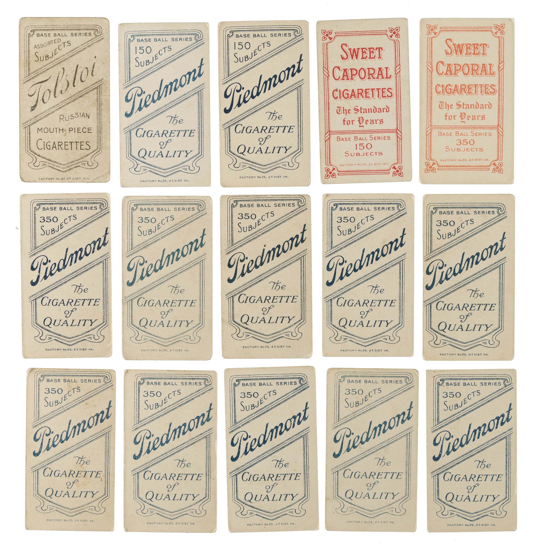 Collection of fifteen 1909-1911 T206 White Border Detroit Tigers baseball cards featuring one Tolstoi advertising back. Condition ranges from Fr to Vg, including one lesser. This collection consists of the following: Bush, Donovan/portrait, D. Jones, Killian/pitching, M. McIntyre, Moriarty, Mullen, Mullin/with bat, O'Leary/hands on knees, Schmidt/portrait, Schmidt/throwing, Stanage, Summers, Willett, and Willetts (Tolstoi). Total: 15 cards.
