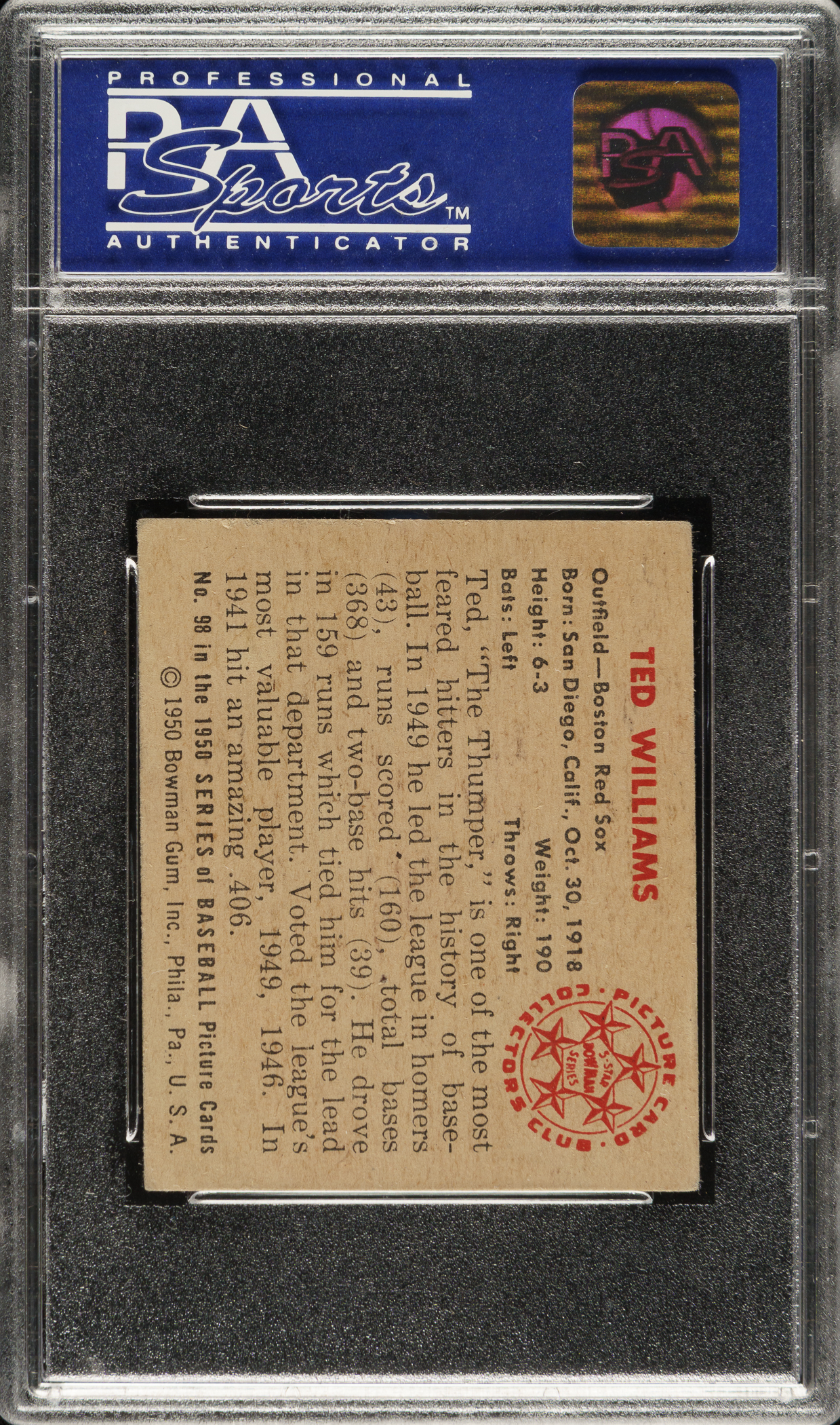 Graded EX 5 by PSA. Boston Red Sox Hall of Famer Ted Williams.