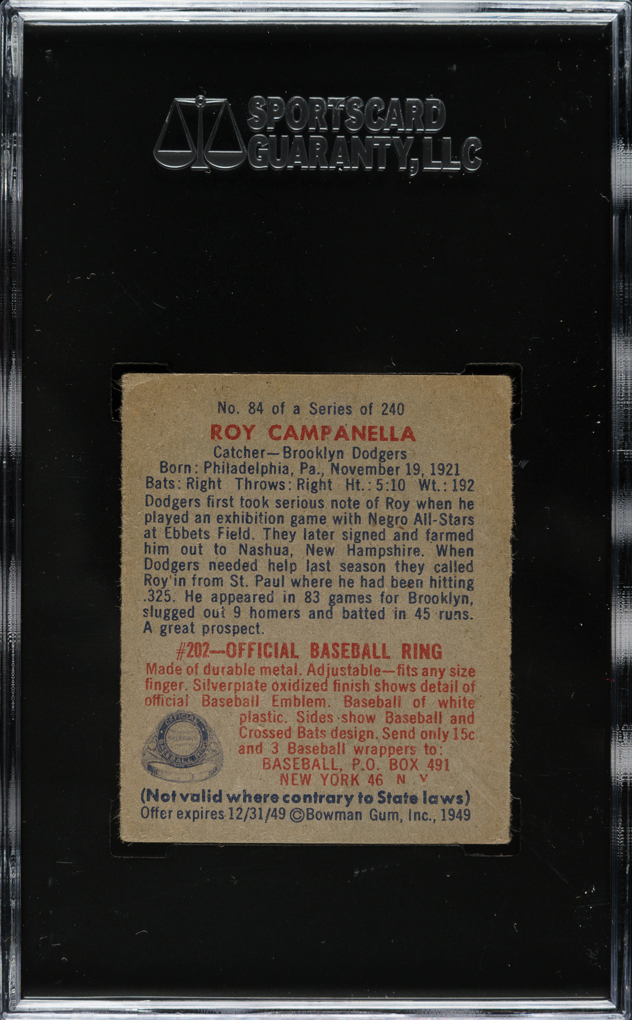Graded VG/EX 50 by SGC. Brooklyn Dodgers Hall of Famer Roy Campanella.