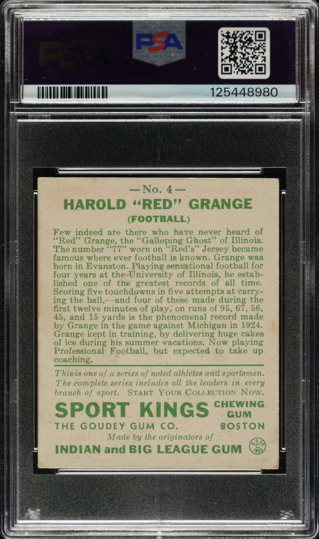 Graded GOOD 2 by PSA. Chicago Bears Hall of Famer Red Grange.