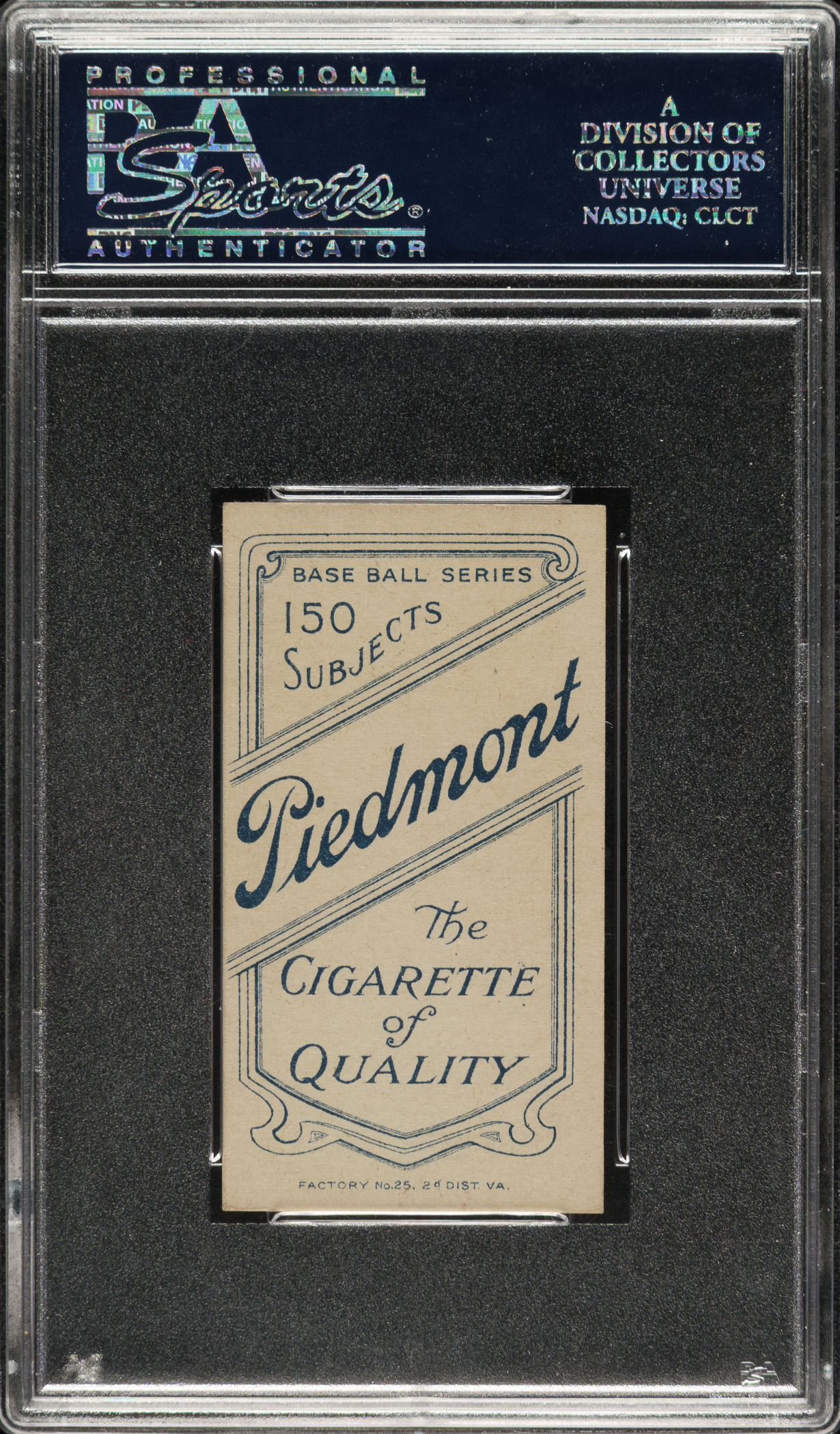 Graded EX-MT+ 6.5 by PSA. Superb high-grade example of one of the three classic poses of New York Giants Hall of Famer Christy Mathewson from the T206 White Borders series. This card exhibits brilliant colors, a focused image, and strong corners. Boldly printed Piedmont 150 advertising reverse. This is a tremendous card that would be a significant addition to any high-quality T206, Hall of Fame, or Christy Mathewson collection.