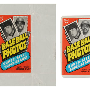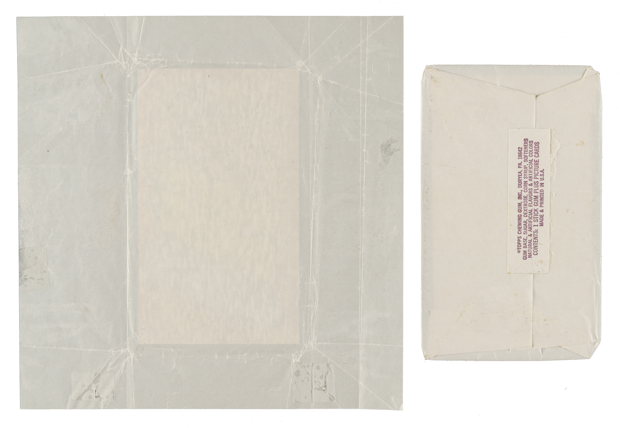 Pair of original 1974 Topps Deckle Edge Wrappers. Condition is Pr due to paper loss and repaired with tape, otherwise Pr.