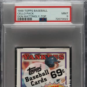 Lot # 3765: 1988 Topps Unopened Cello Pack PSA MINT 9 - Don Mattingly on Top