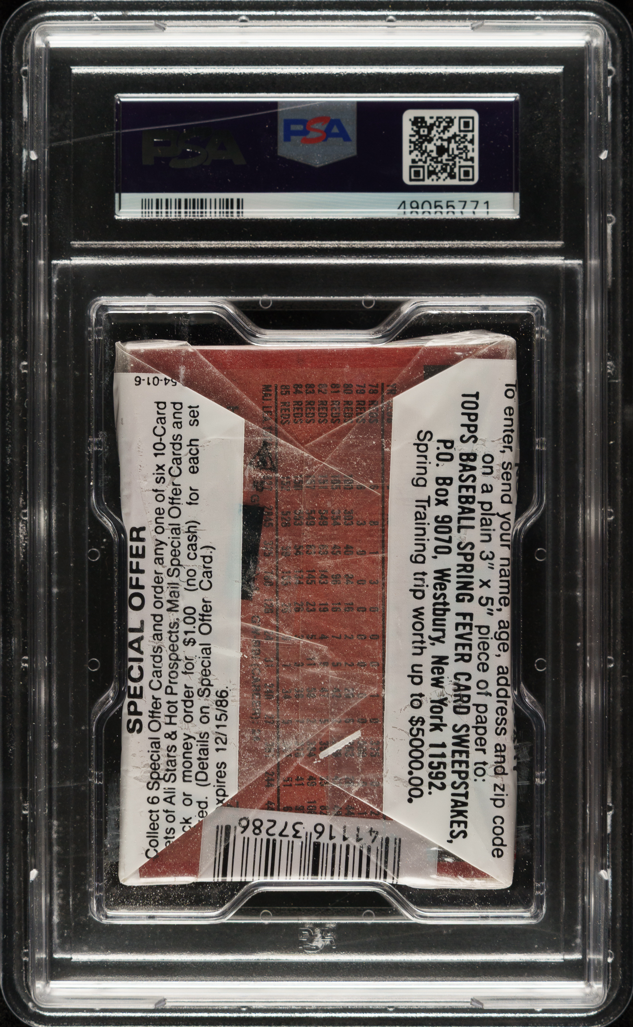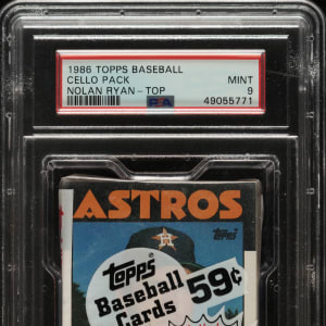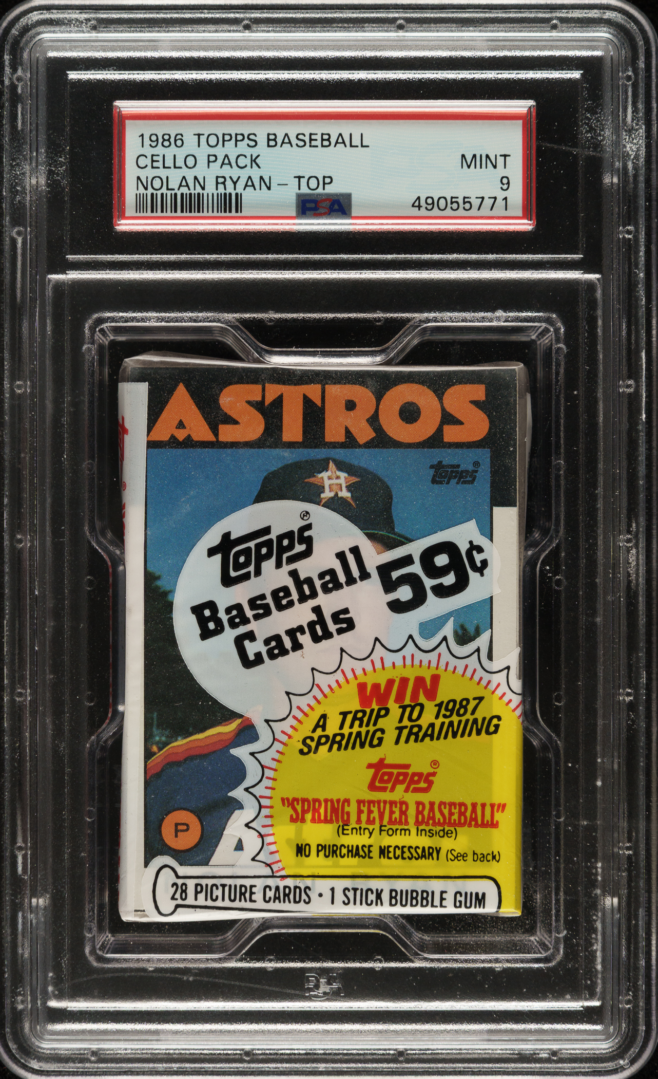 Lot # 3753: 1986 Topps Unopened Cello Pack PSA MINT 9 - Nolan Ryan on Top