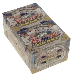 Complete, original, unopened 2024 Bowman Draft super jumbo box. The box contains five packs and 120 cards per pack for a total of 600 cards. The box is wrapped in its original factory cellophane. The set is highlighted by the first Bowman cards of young stars Jac Caglianone, Nick Kurtz, and Chase Burns. According to Bowmans' production information, there are five Chrome Prospect autograph cards per super jumbo box. The size/weight of this item requires that there will be an additional shipping charge for this lot.