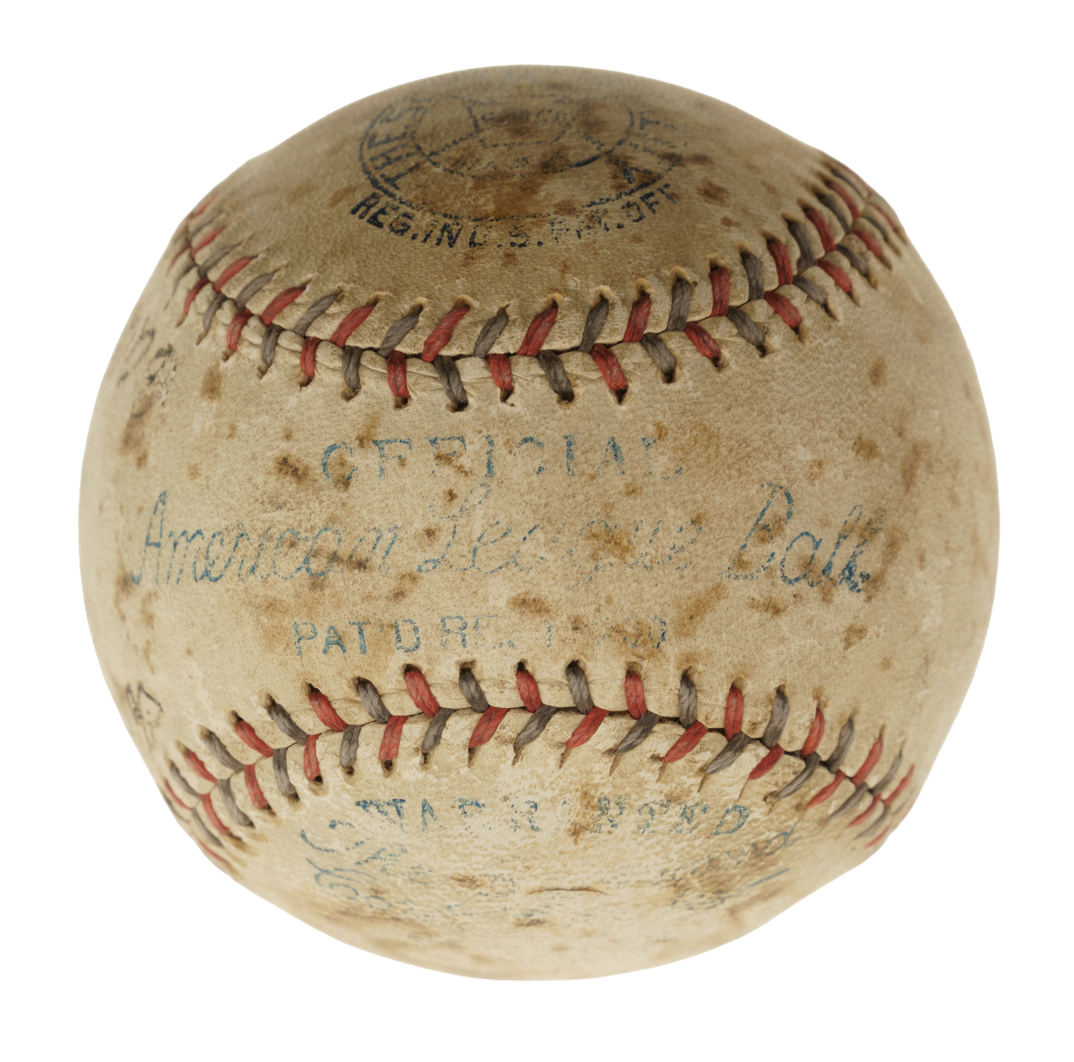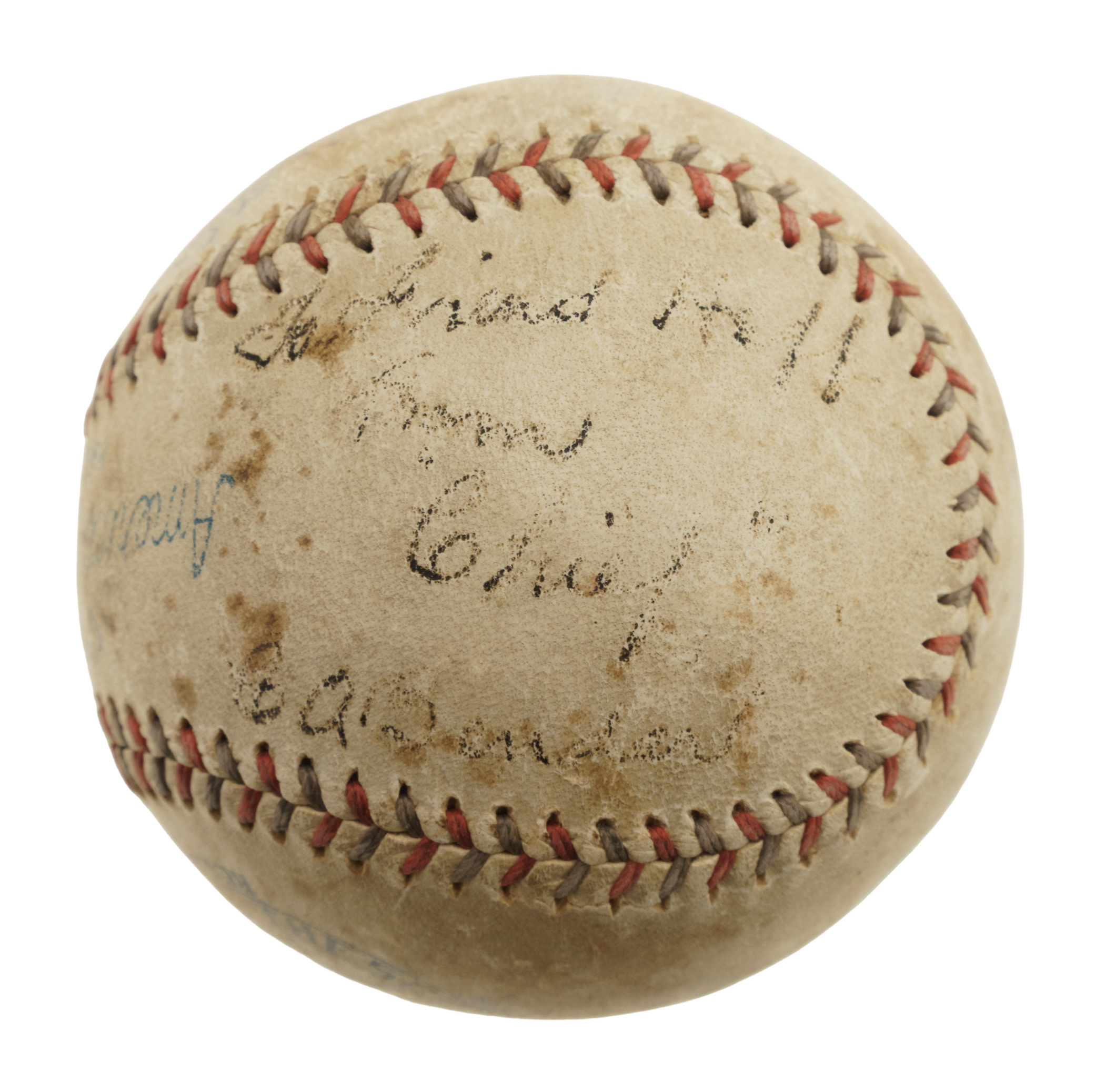Official American League baseball inscribed by Hall of Fame pitcher Charles "Chief" Bender in black ink on a side panel. His inscription reads “To My Friend Heff /From Chief Bender.” The signature of Chief Bender, who died on May 22, 1954, is scarce in any form, let alone by itself on a baseball. Bender was elected to the Hall of Fame in 1953 and died just nine months later. As a result, Hall of Fame autograph collectors had a very short window in which to obtain his signature. This is only the fourth Bender single-signed ball we have ever offered, and we have seen probably fewer than 10 at auction in the past 20 years. The ball displays scattered discoloration and several surface abrasions. Full LOA from PSA/DNA, which has graded the signature "4" and the baseball "2" for an overall grade of "3."