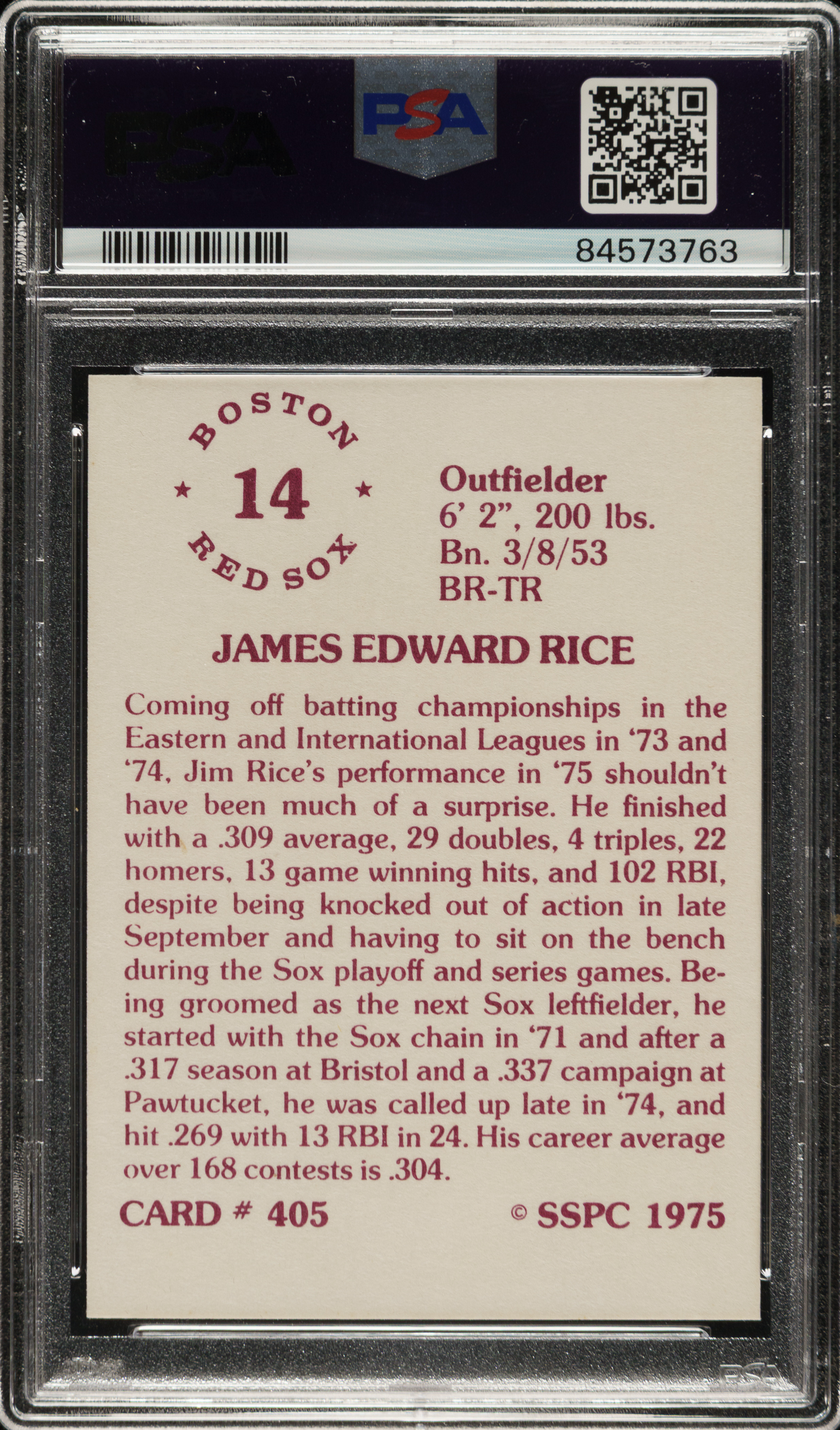Graded MINT 9 by PSA. Boston Red Sox Hall of Famer Jim Rice.