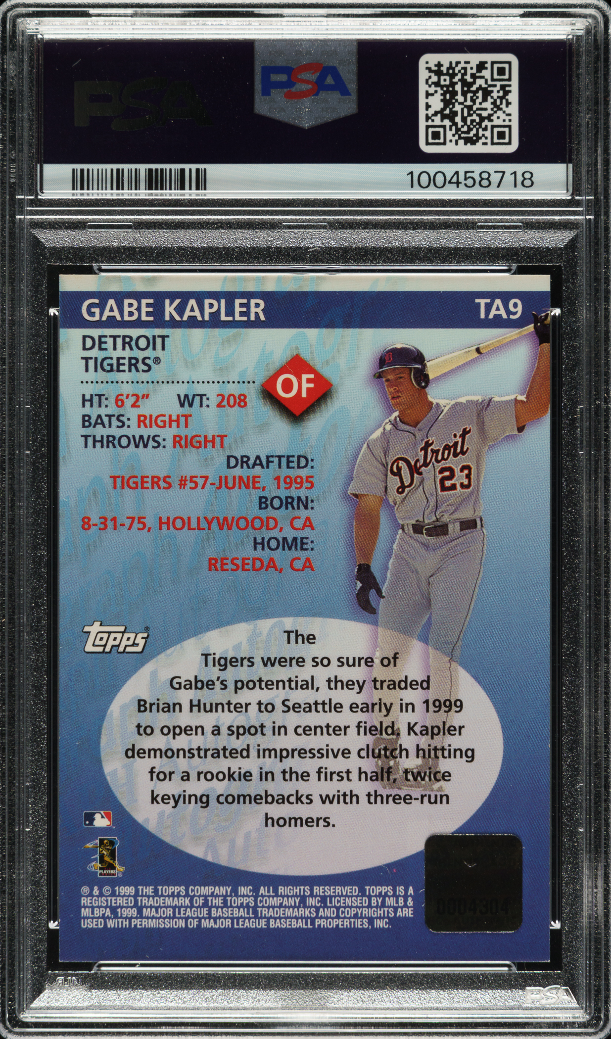 PSA/DNA has encapsulated the card, grading the signature MINT 9 and the card MINT 9. Detroit Tigers.
