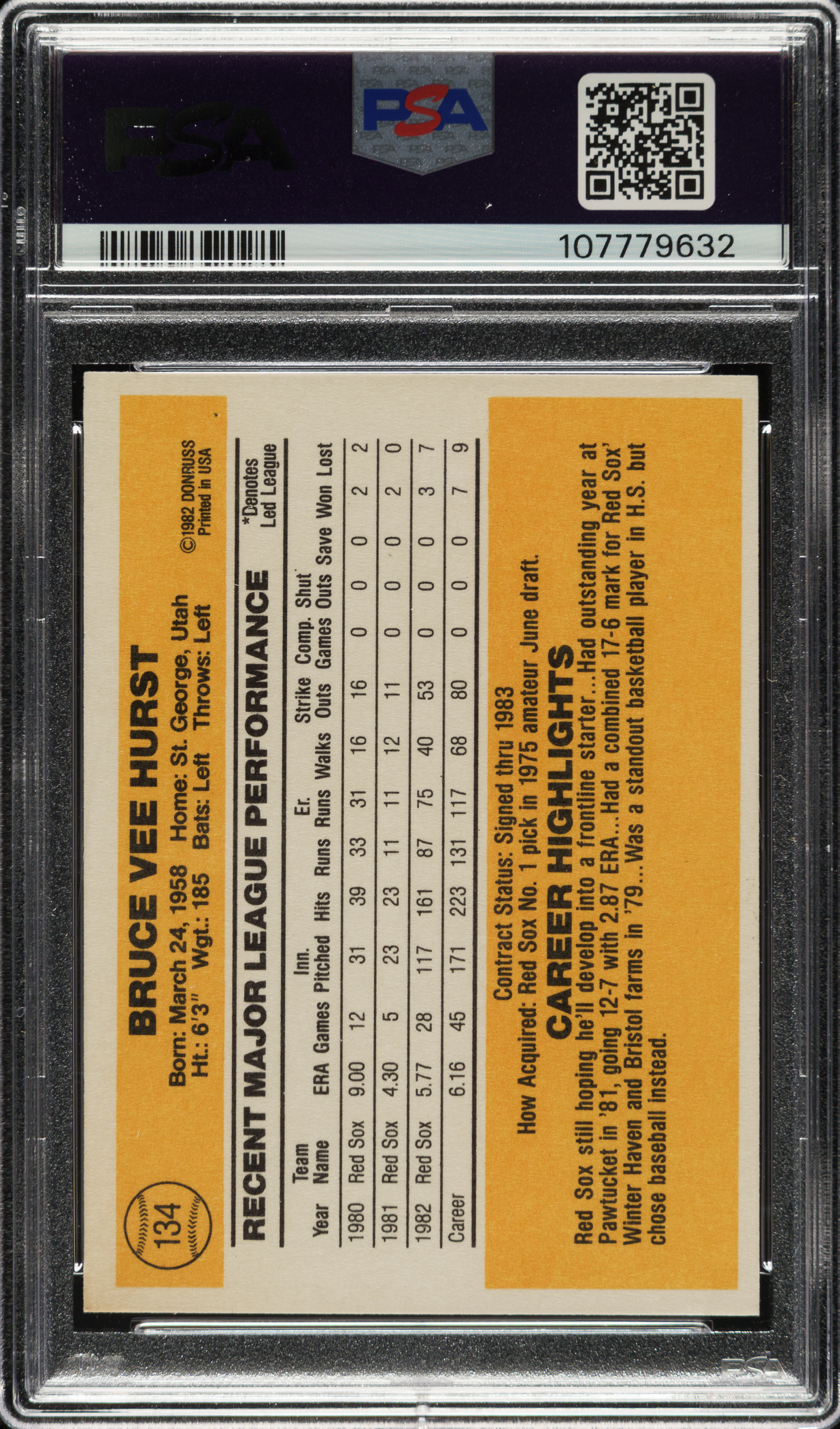 PSA/DNA has encapsulated the card, grading the signature NM-MT 8 and the card NM 7. Boston Red Sox.