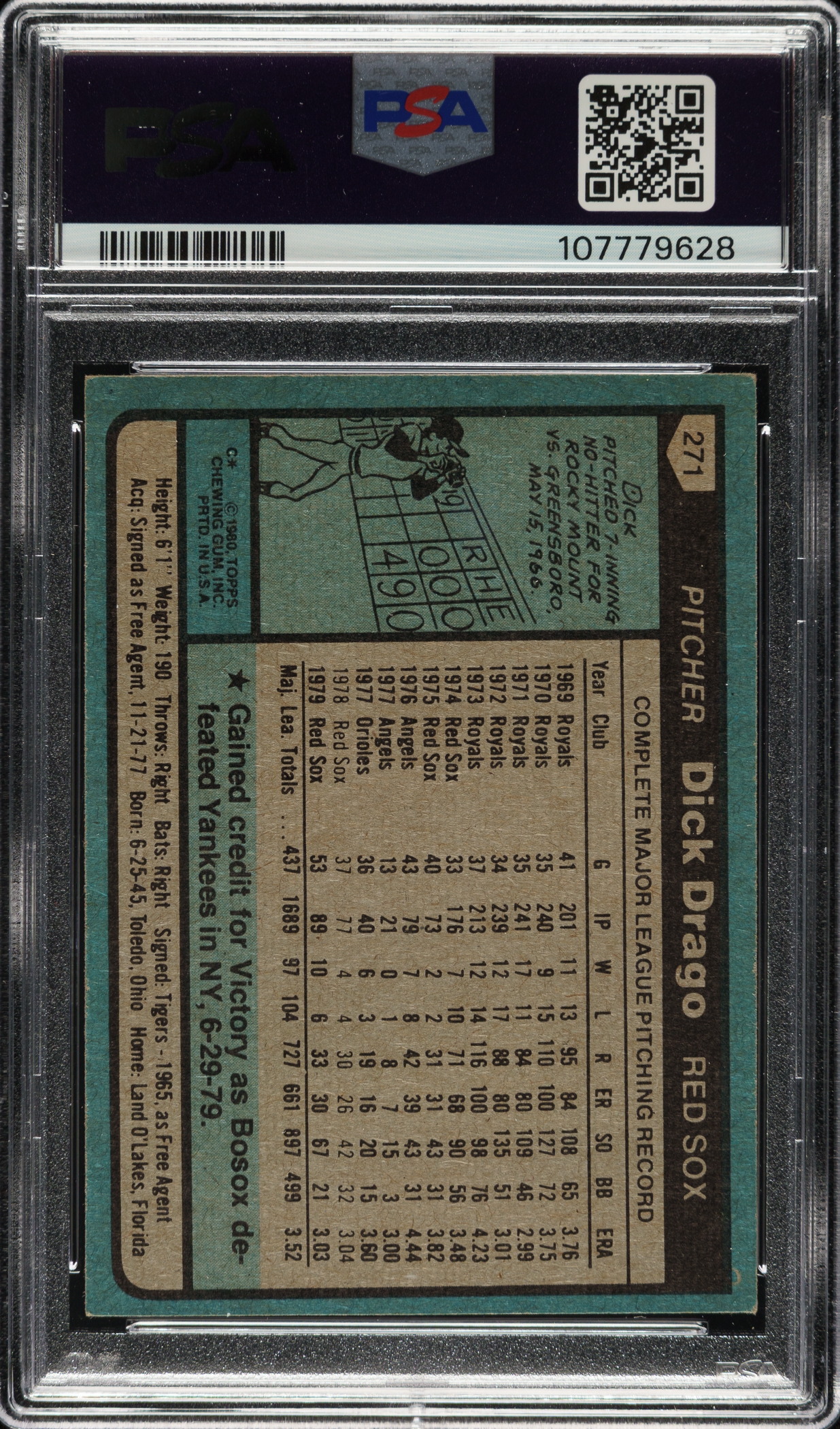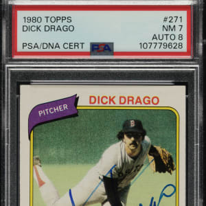 PSA/DNA has encapsulated the card, grading the signature NM-MT 8 and the card NM 7. Boston Red Sox.