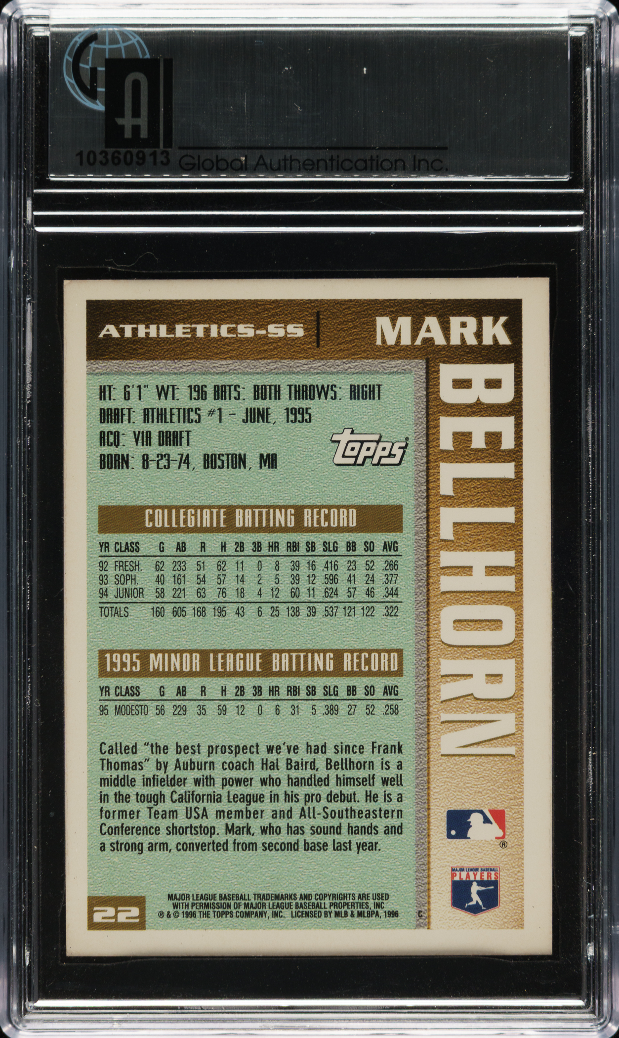 GAI has encapsulated the card, grading the signature Authentic. Oakland Athletics.