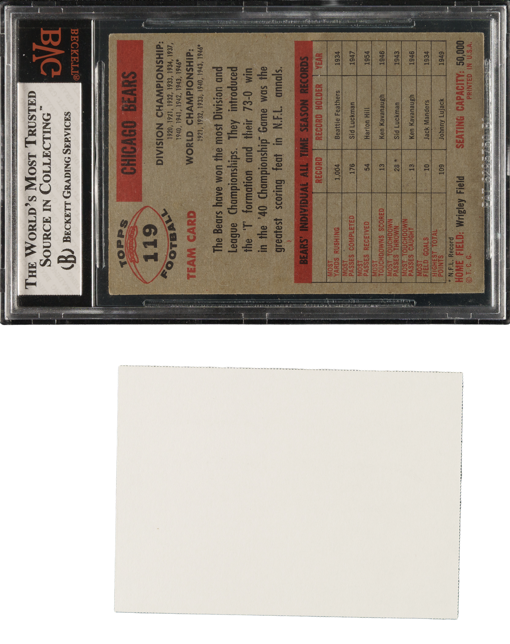 Graded GOOD 2 by BVG. Chicago Bears. Accompanied by Topps Vault Certificate of Authenticity.