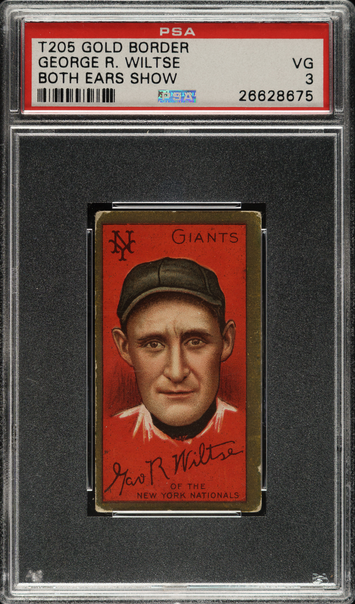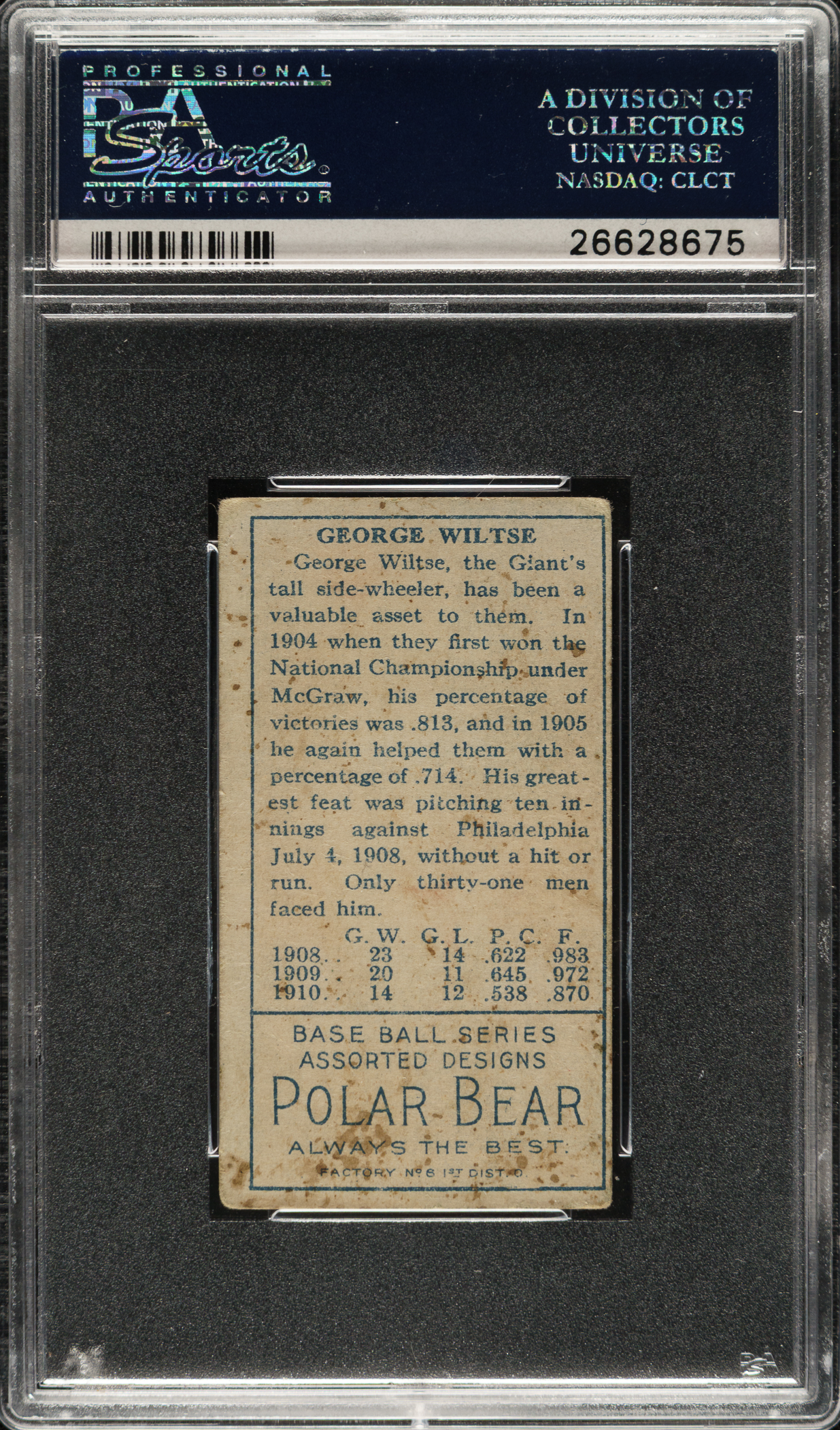 Lot # 1620: 1911 T205 Gold Border George Wiltse Both Ears Show PSA VG 3 - Polar Bear Back