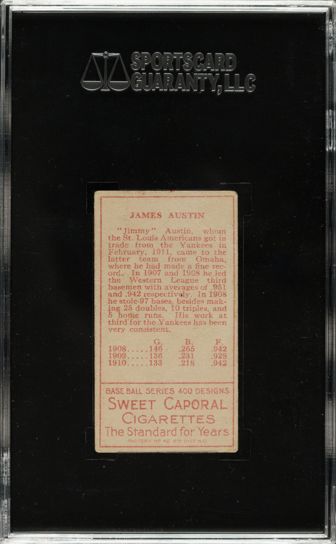 Lot # 1624: 1911 T205 Gold Border Jimmy Austin SGC VG 40