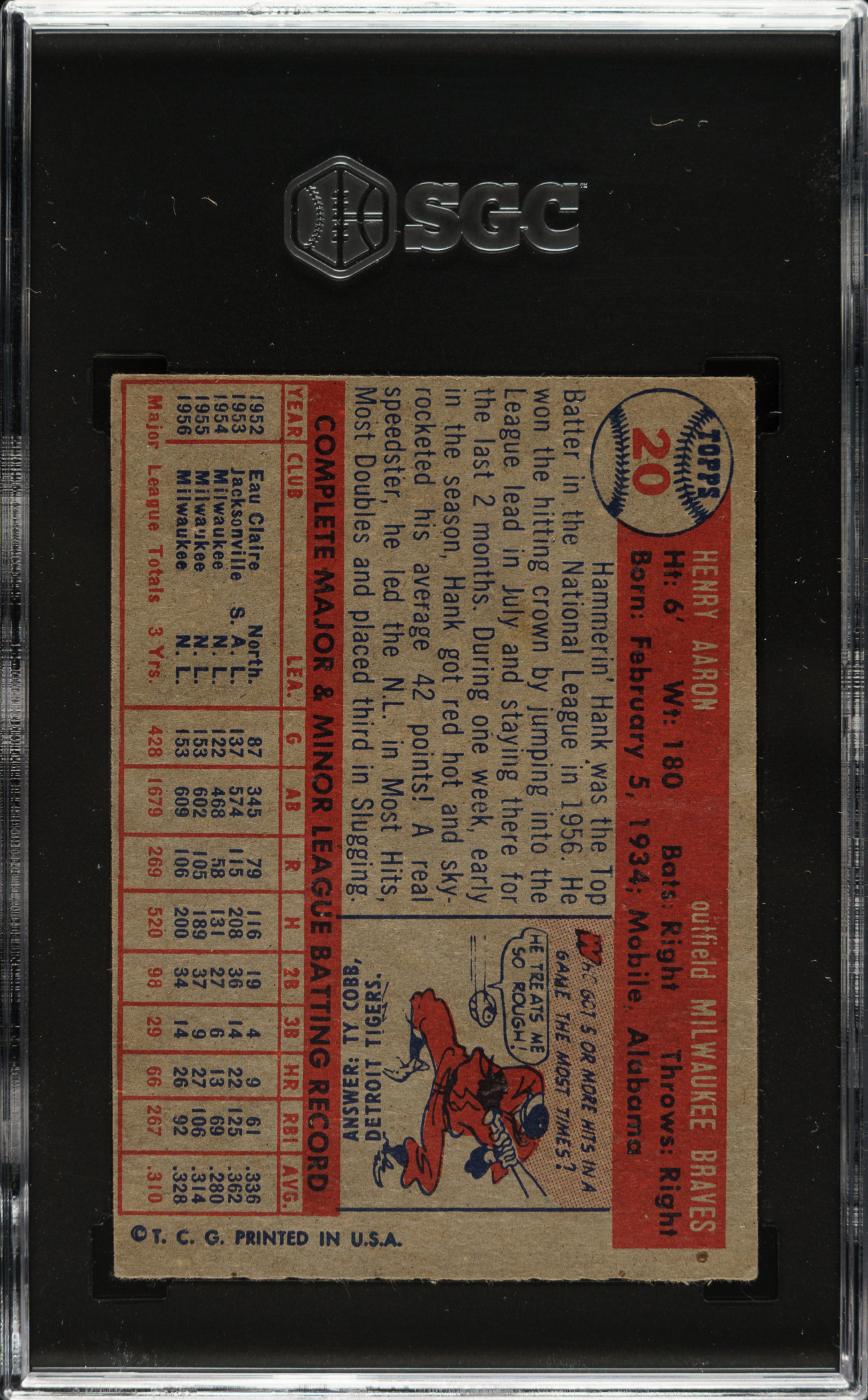 Lot # 2740: 1957 Topps #20 Hank Aaron SGC VG/EX+ 4.5