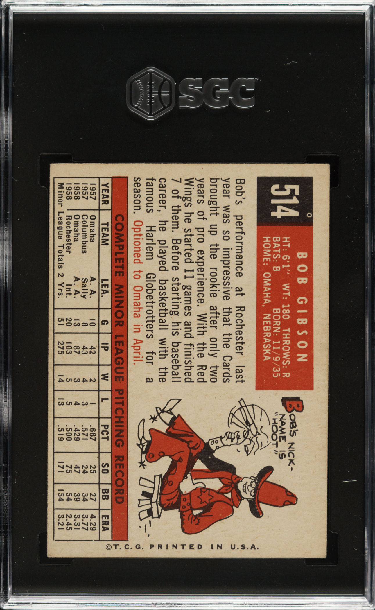 Graded VG/EX+ 4.5 by SGC. St. Louis Cardinals Hall of Famer Bob Gibson.