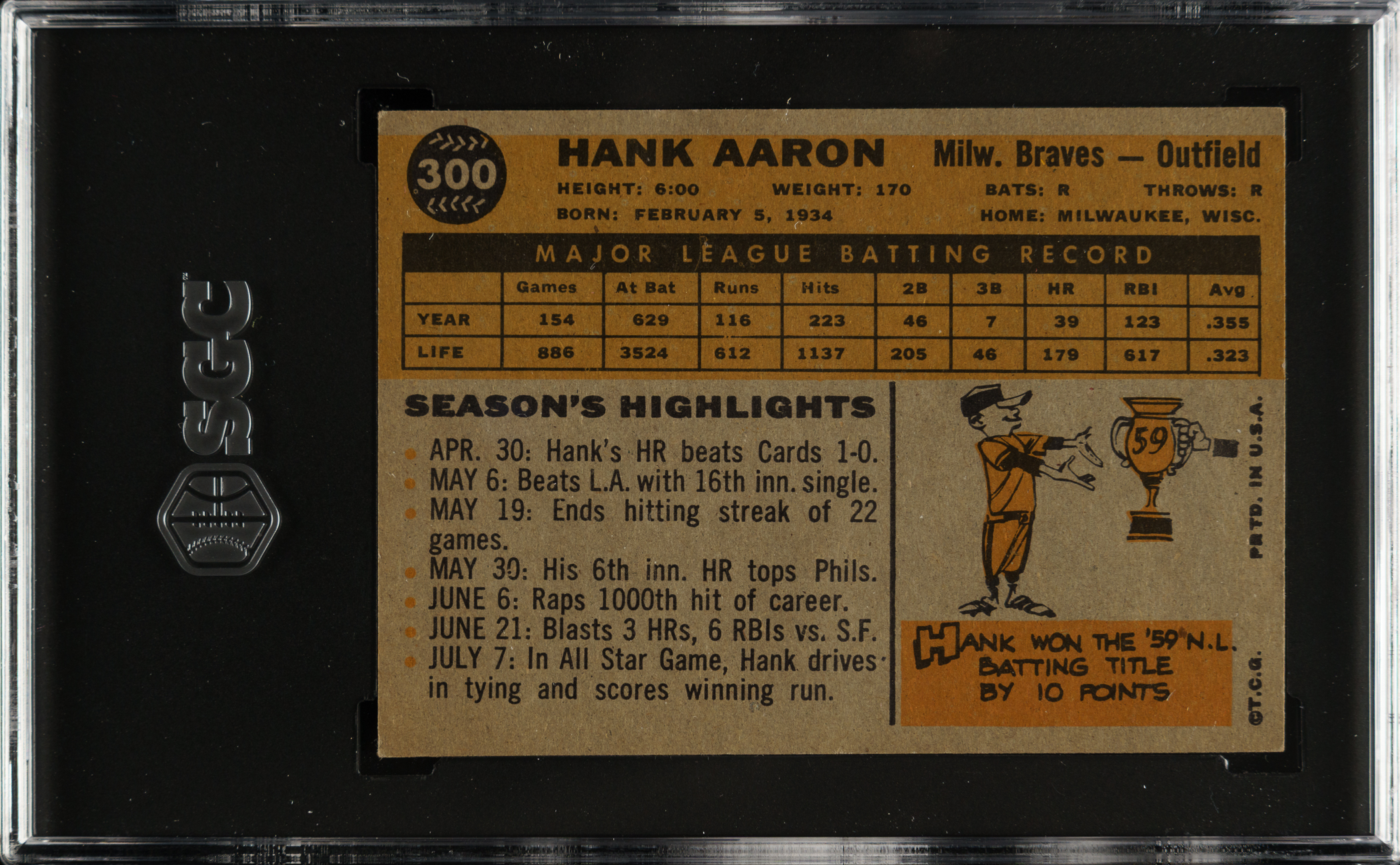 Graded VG/EX+ 4.5 by SGC. Milwaukee Braves Hall of Famer Hank Aaron.