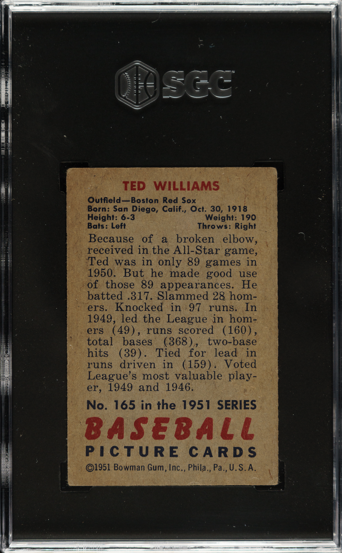 Lot # 2407: 1951 Bowman #165 Ted Williams SGC GOOD 2