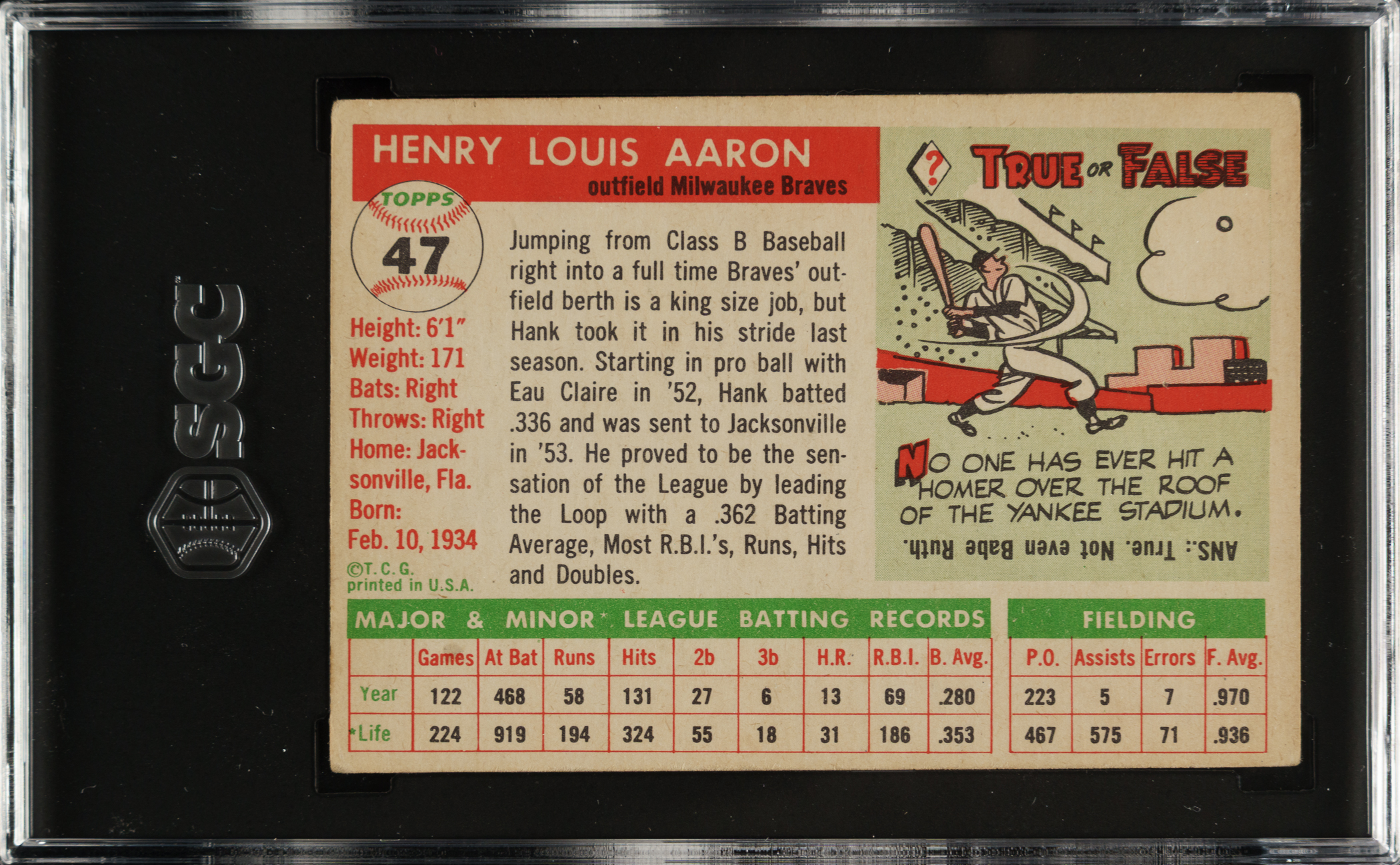 Graded VG 3 by SGC. Milwaukee Braves Hall of Famer Hank Aaron.
