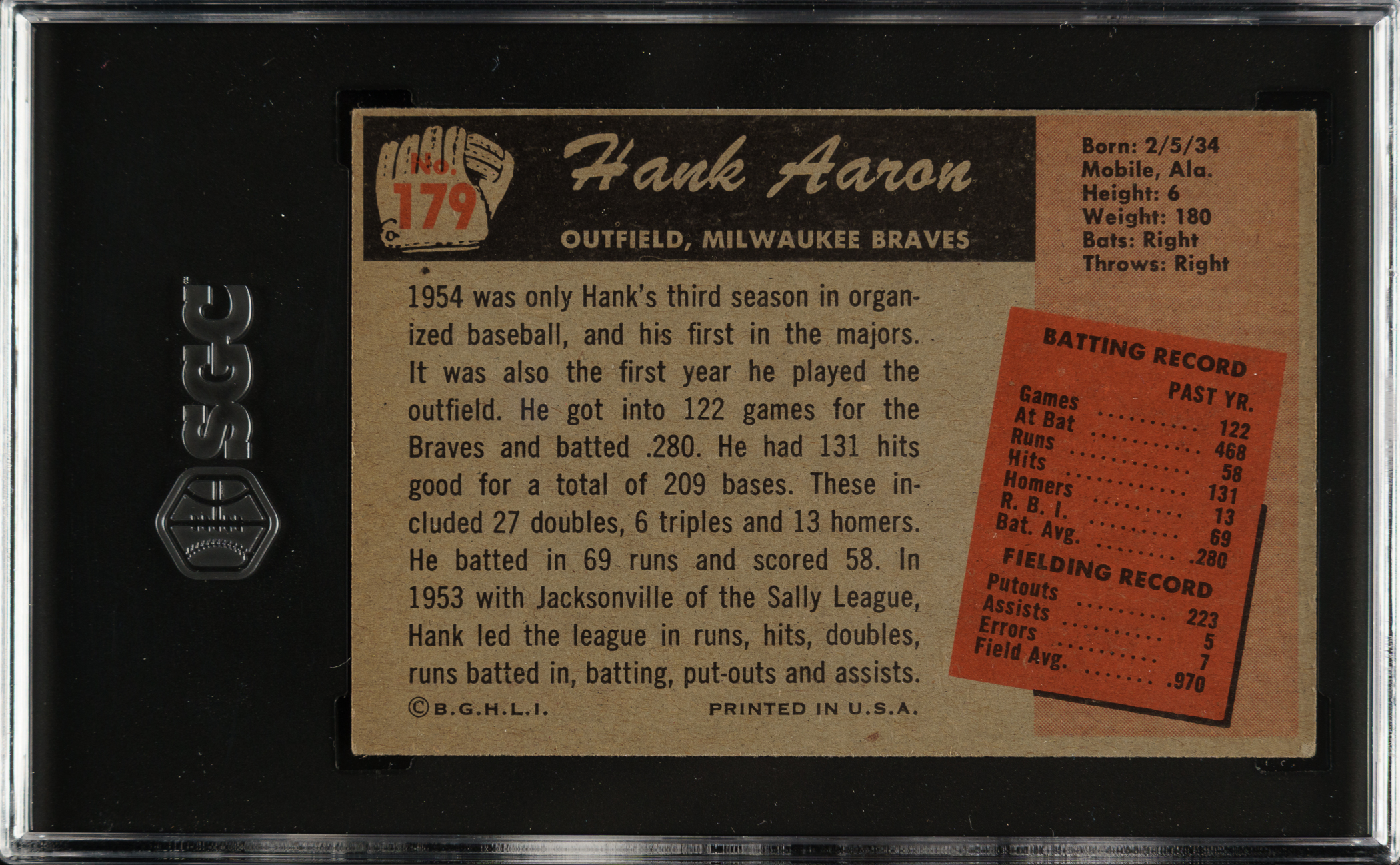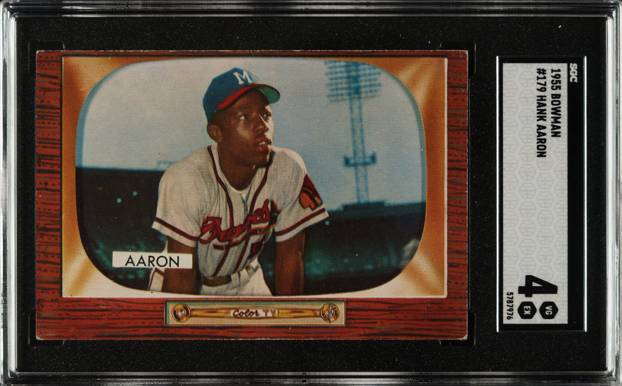 Graded VG/EX 4 by SGC. Milwaukee Braves Hall of Famer Hank Aaron.