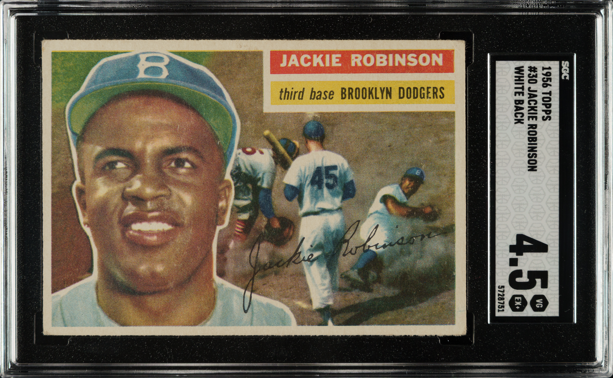 Graded VG/EX+ 4.5 by SGC. Brooklyn Dodgers Hall of Famer Jackie Robinson.