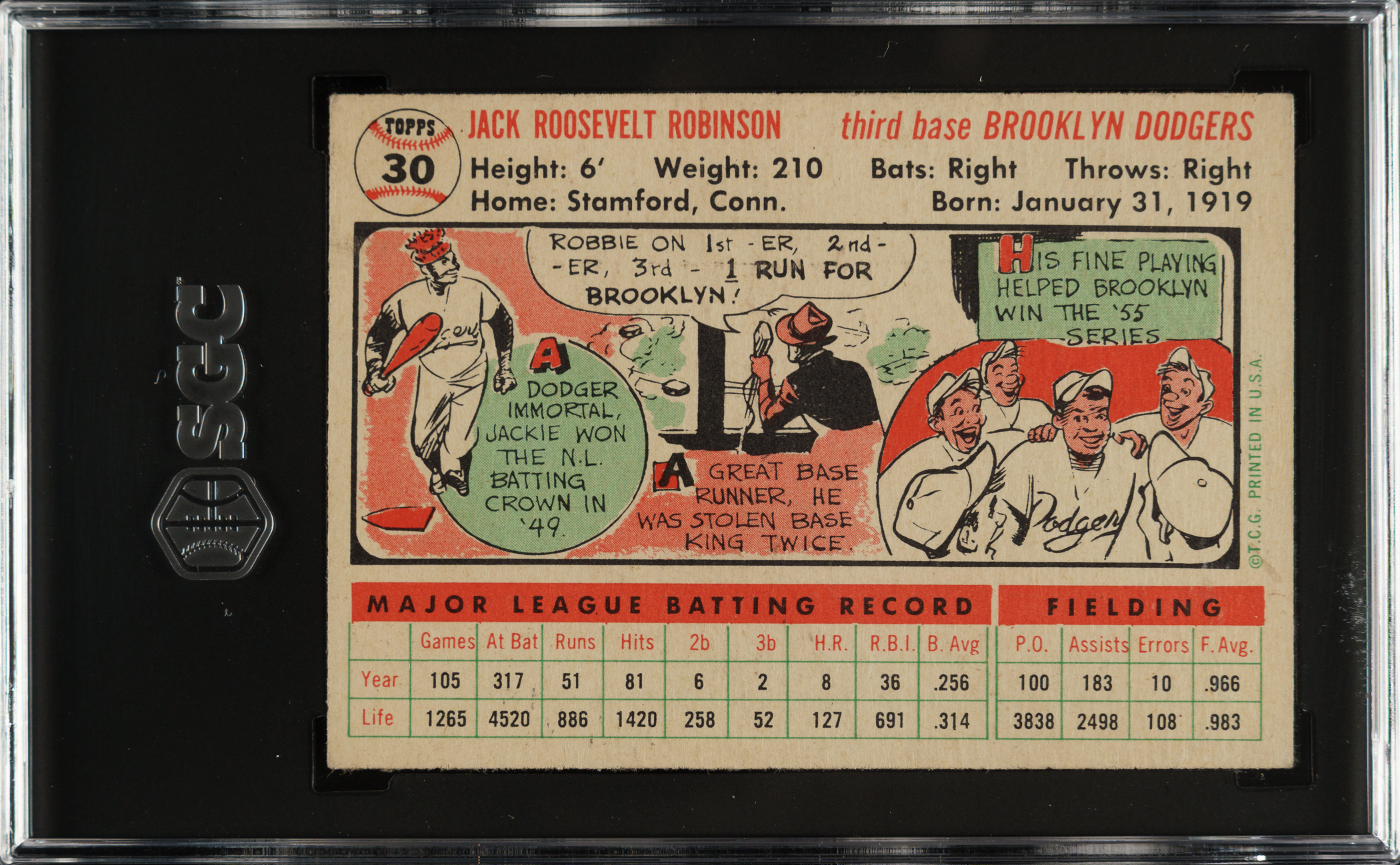 Lot # 2702: 1956 Topps #30 Jackie Robinson White Back SGC VG/EX 4