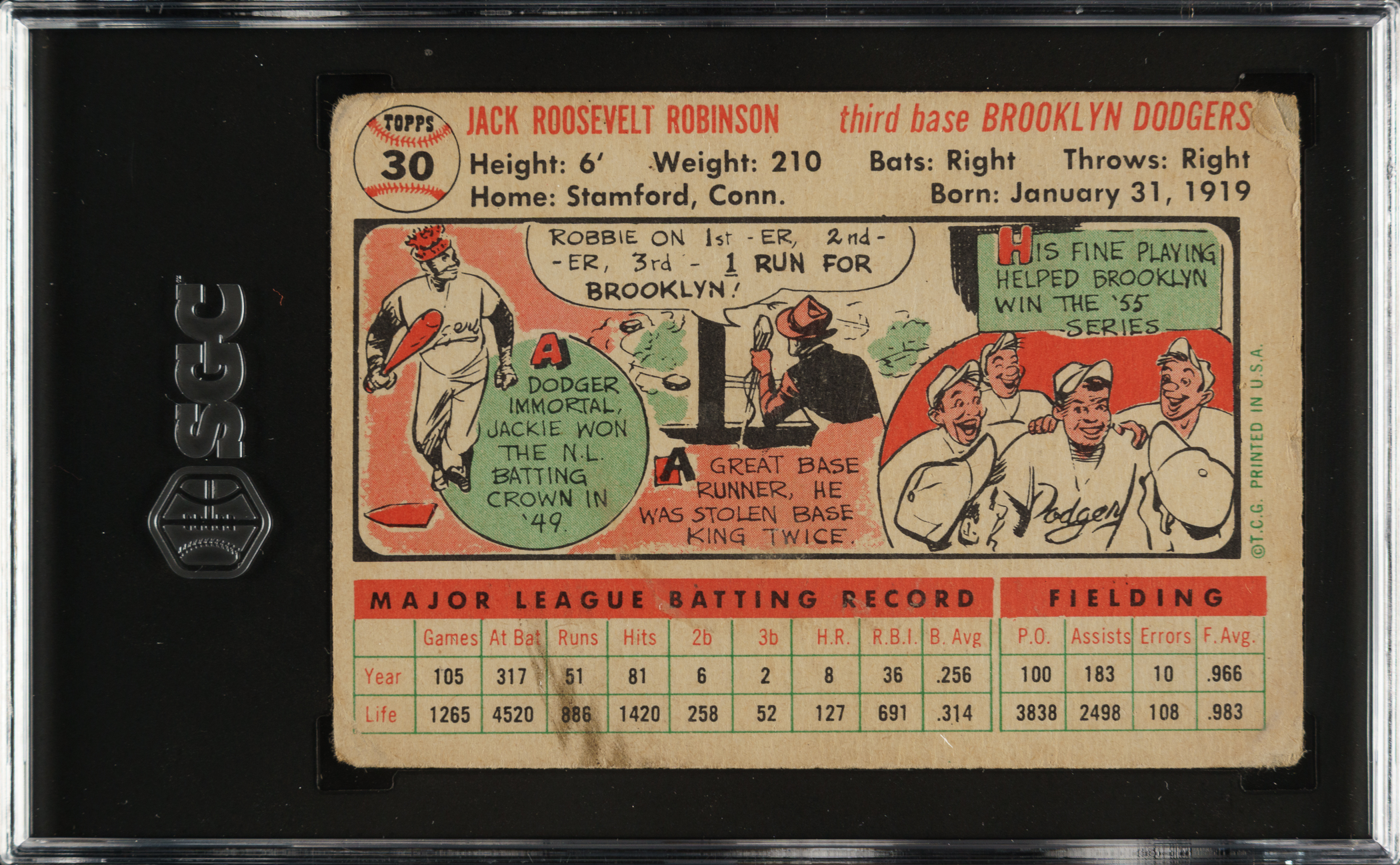 Graded FAIR 1.5 by SGC. Brooklyn Dodgers Hall of Famer Jackie Robinson.