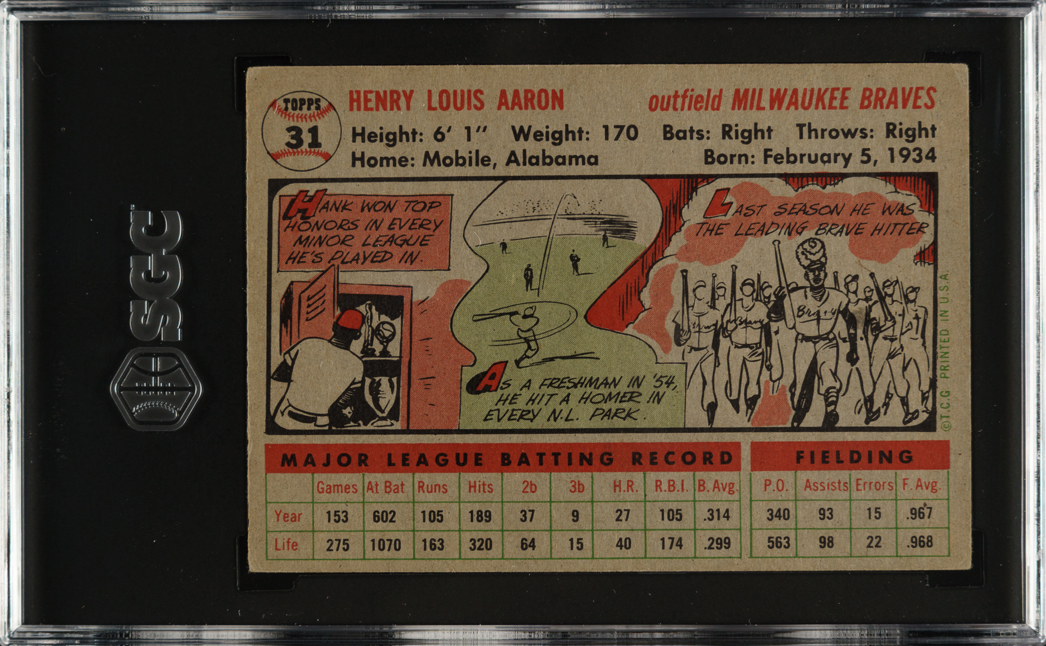 Lot # 2705: 1956 Topps #31 Hank Aaron Gray Back SGC VG 3