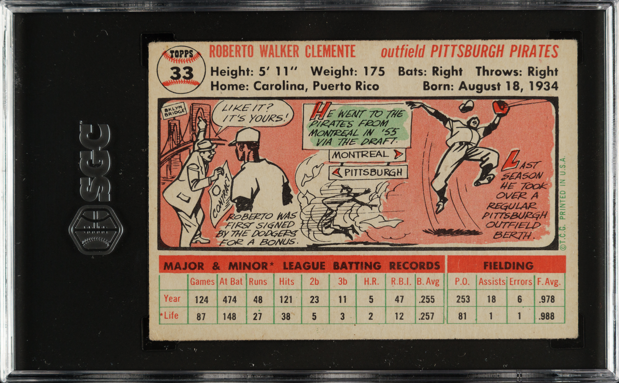 Graded VG/EX 4 by SGC. Pittsburgh Pirates Hall of Famer Roberto Clemente.