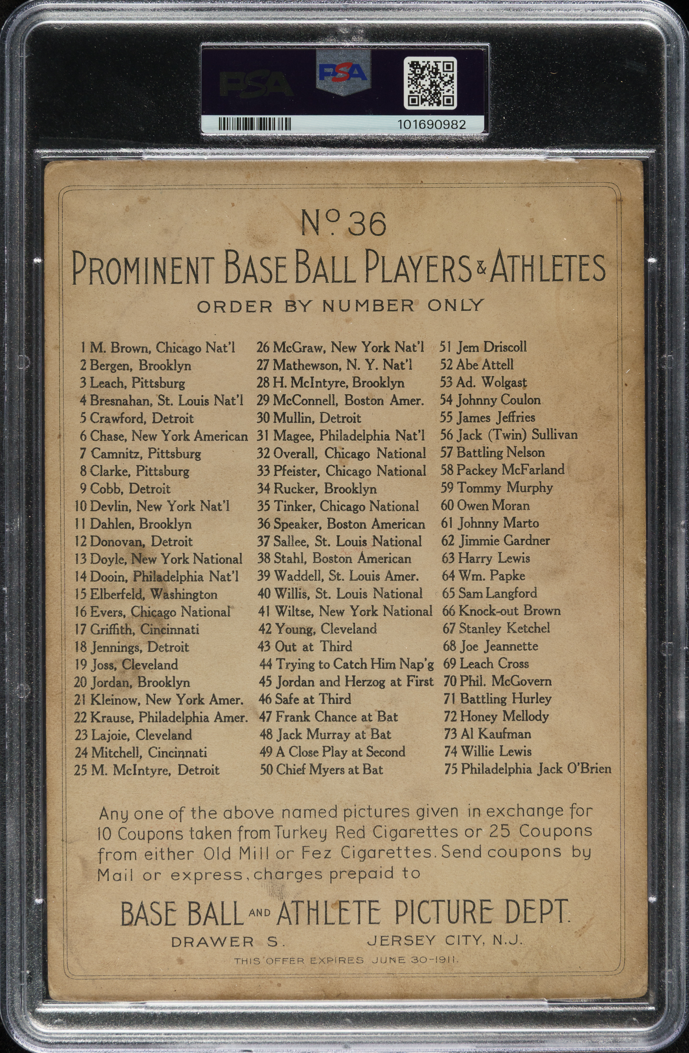 Graded FAIR 1.5 by PSA. Boston Red Sox Hall of Famer Tris Speaker.