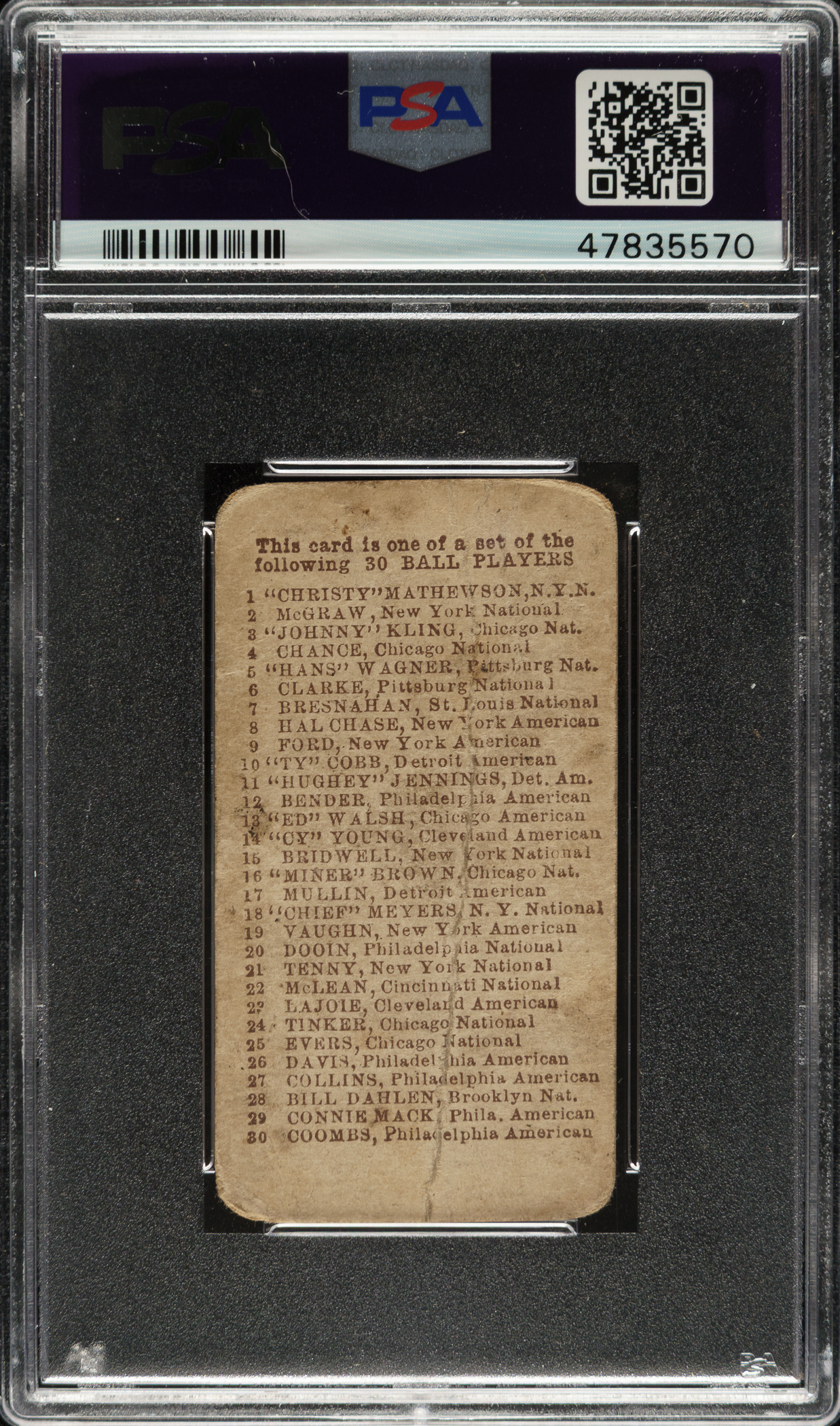 Graded POOR 1 by PSA. Chicago Cubs Hall of Famer Joe Tinker.