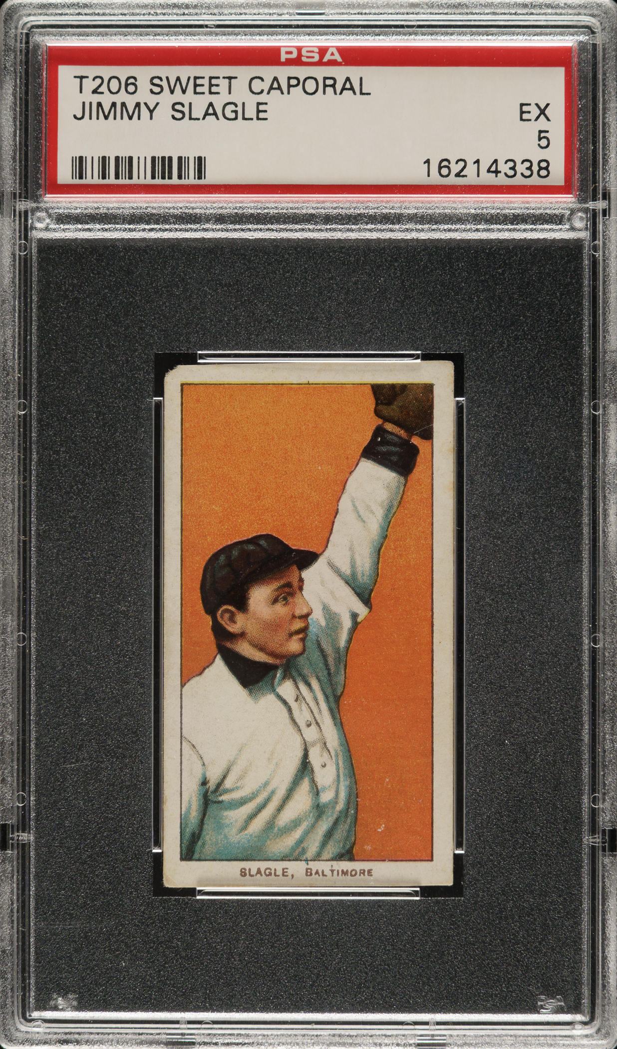 Lot # 1224: 1909-1911 T206 White Border Jimmy Slagle PSA EX 5