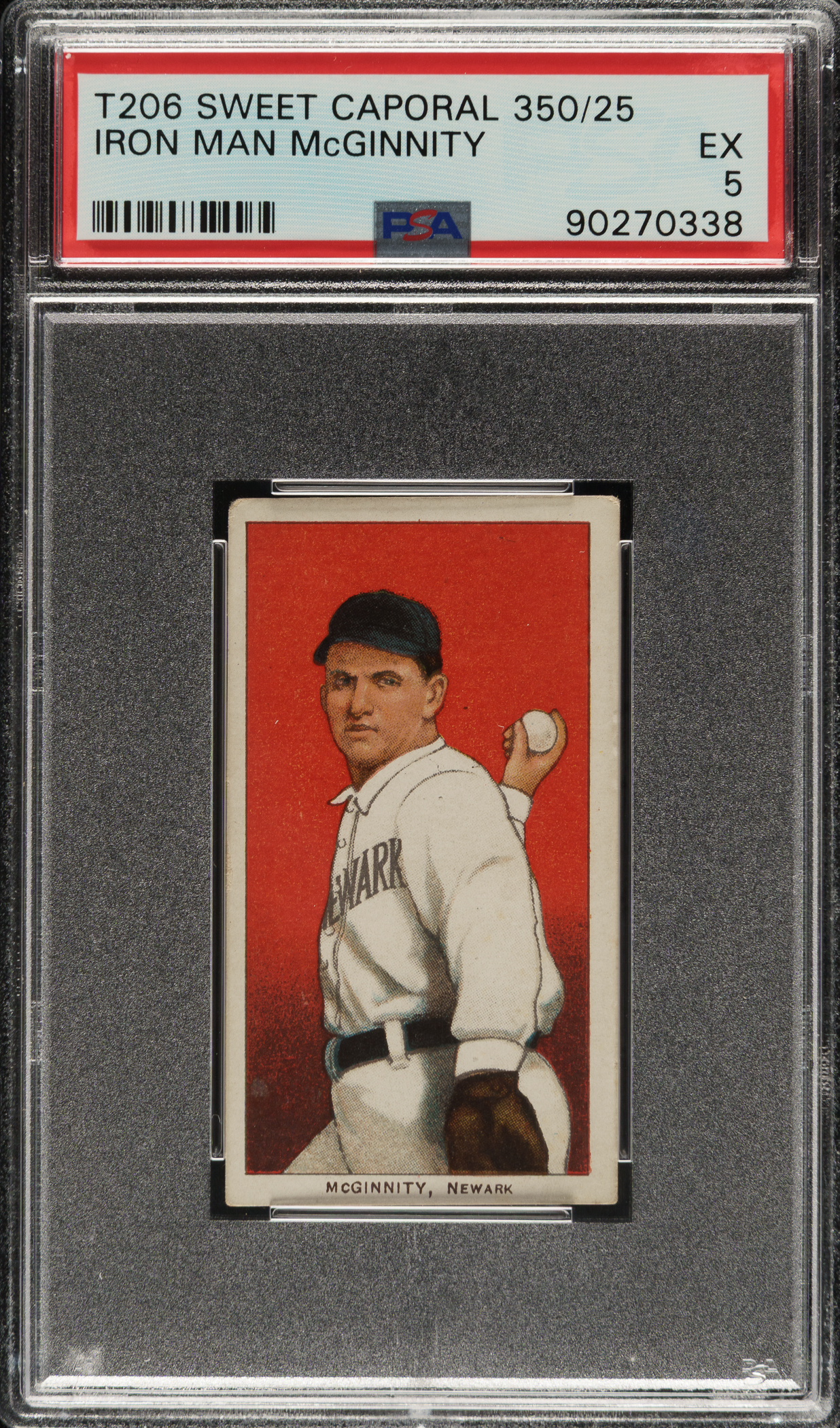 Graded EX 5 by PSA. Newark Indians Hall of Famer Joe "Iron Man" McGinnity.