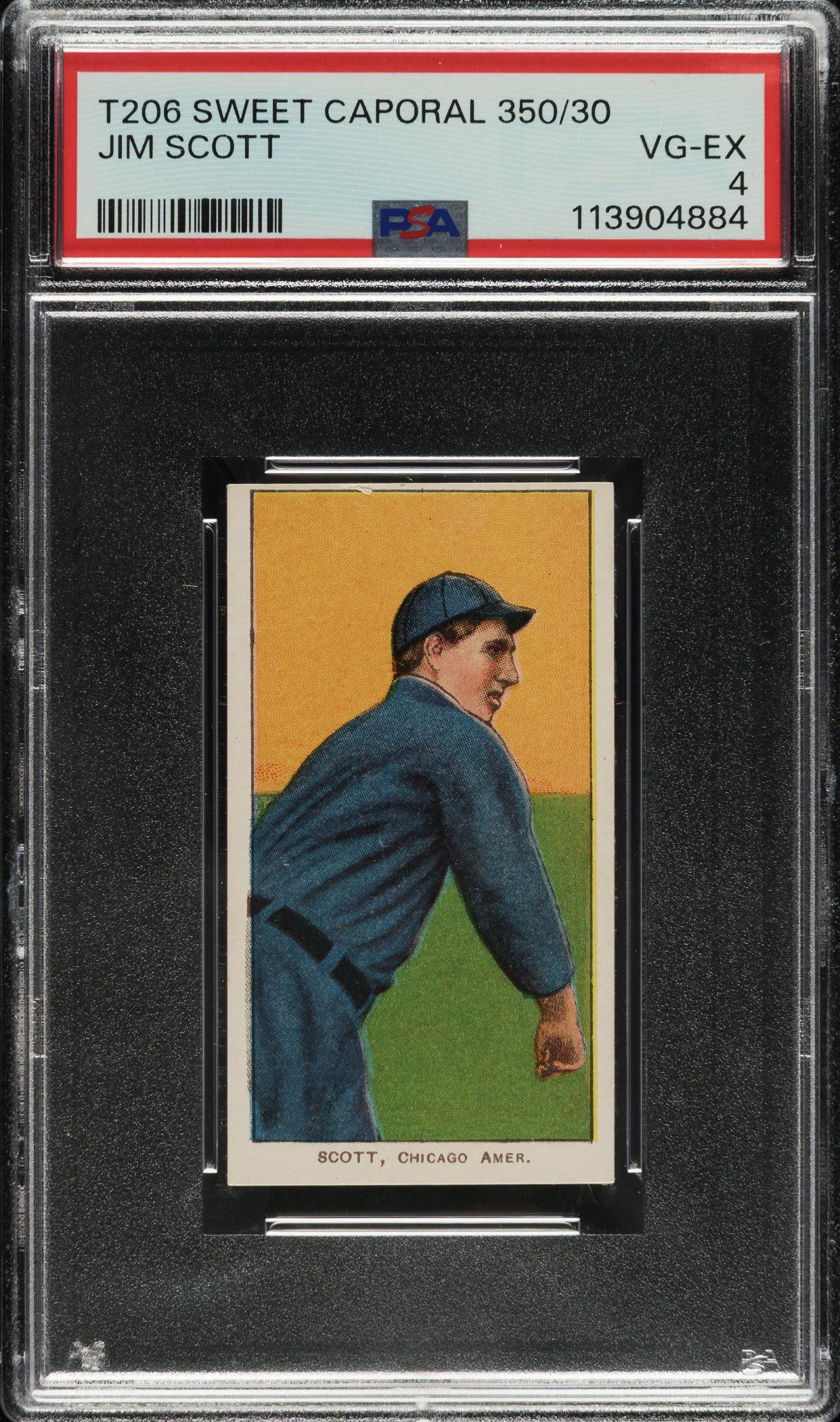 Lot # 1184: 1909-1911 T206 White Border Jim Scott PSA VG-EX 4
