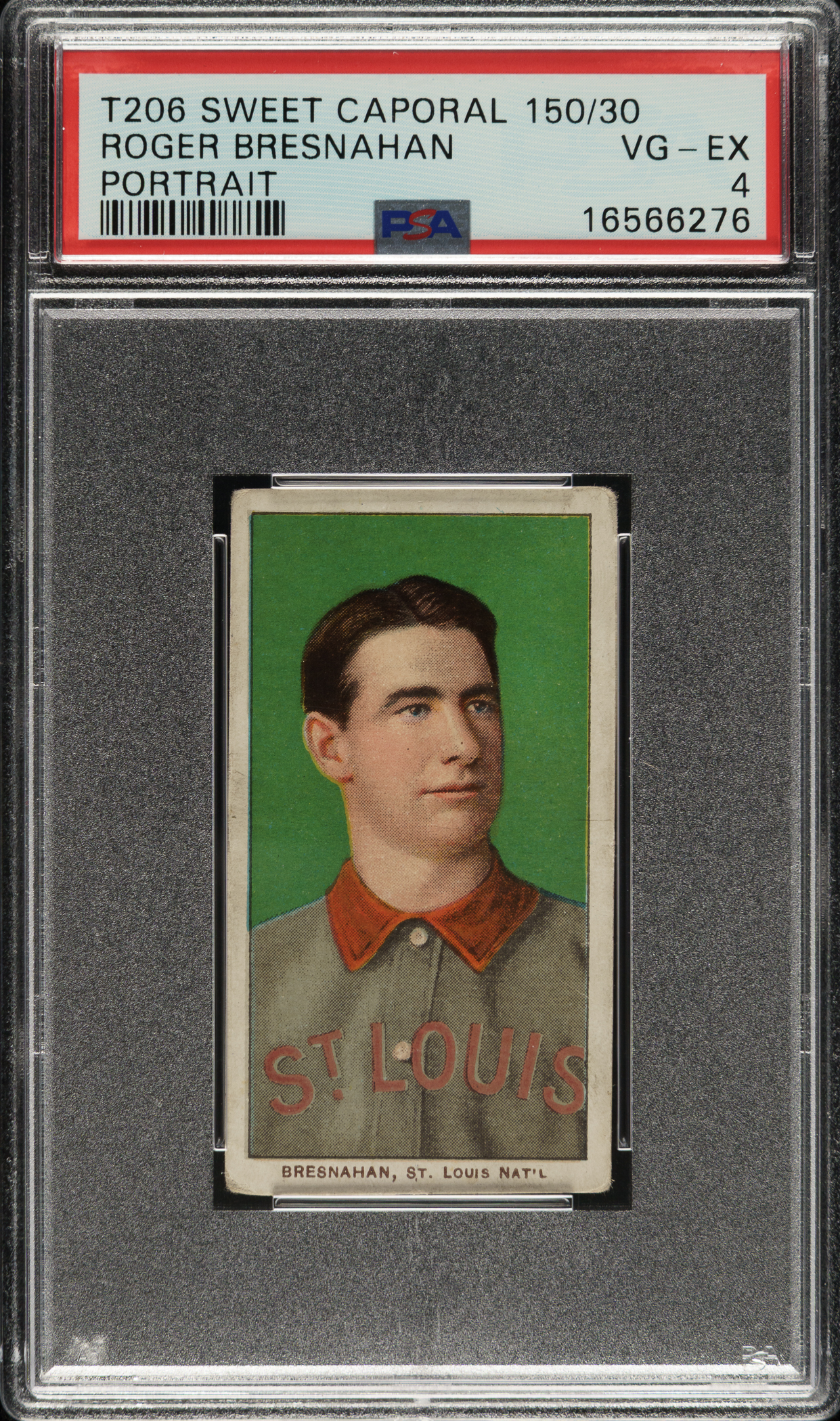 Graded VG-EX 4 by PSA. St. Louis Cardinals Hall of Famer Roger Bresnahan.