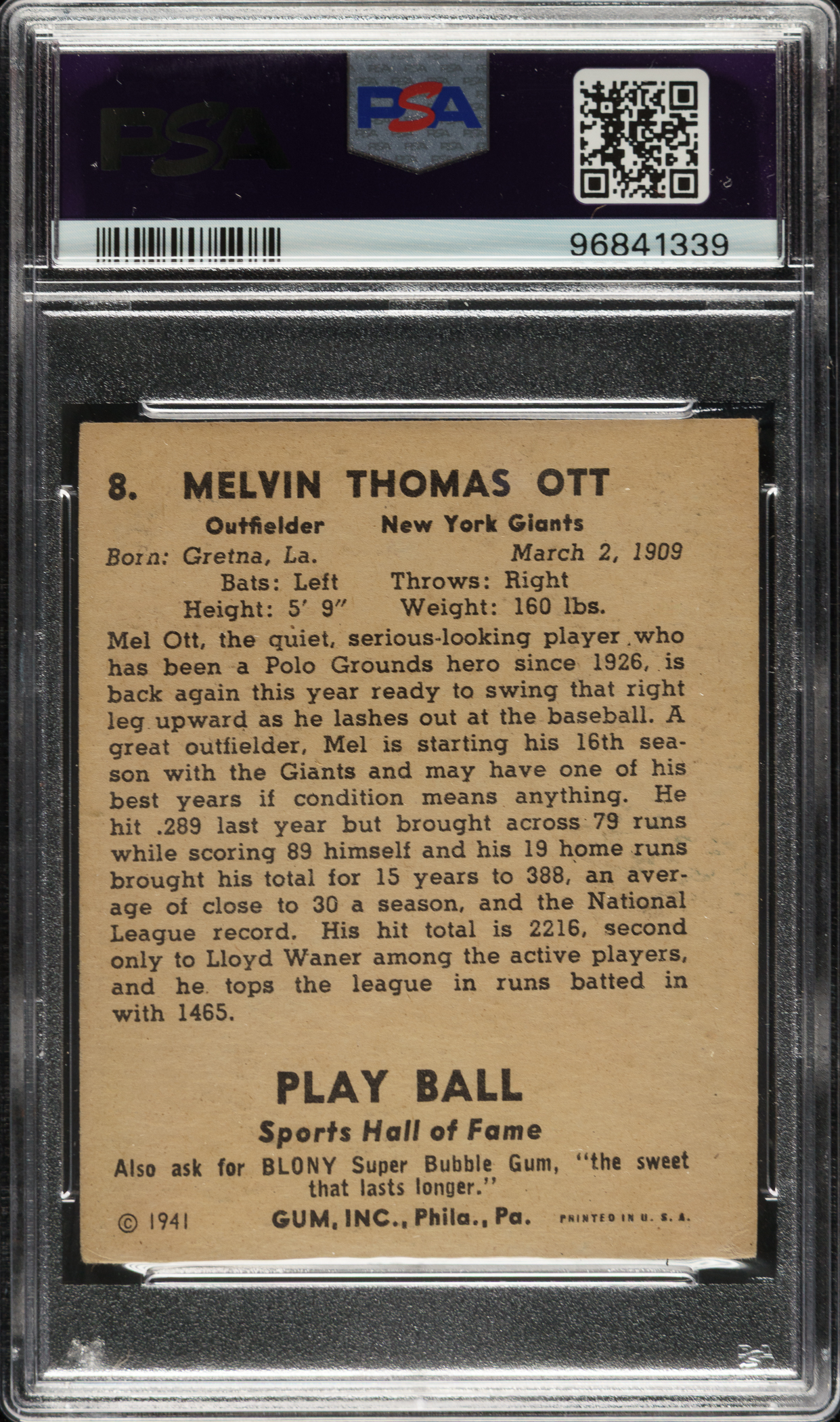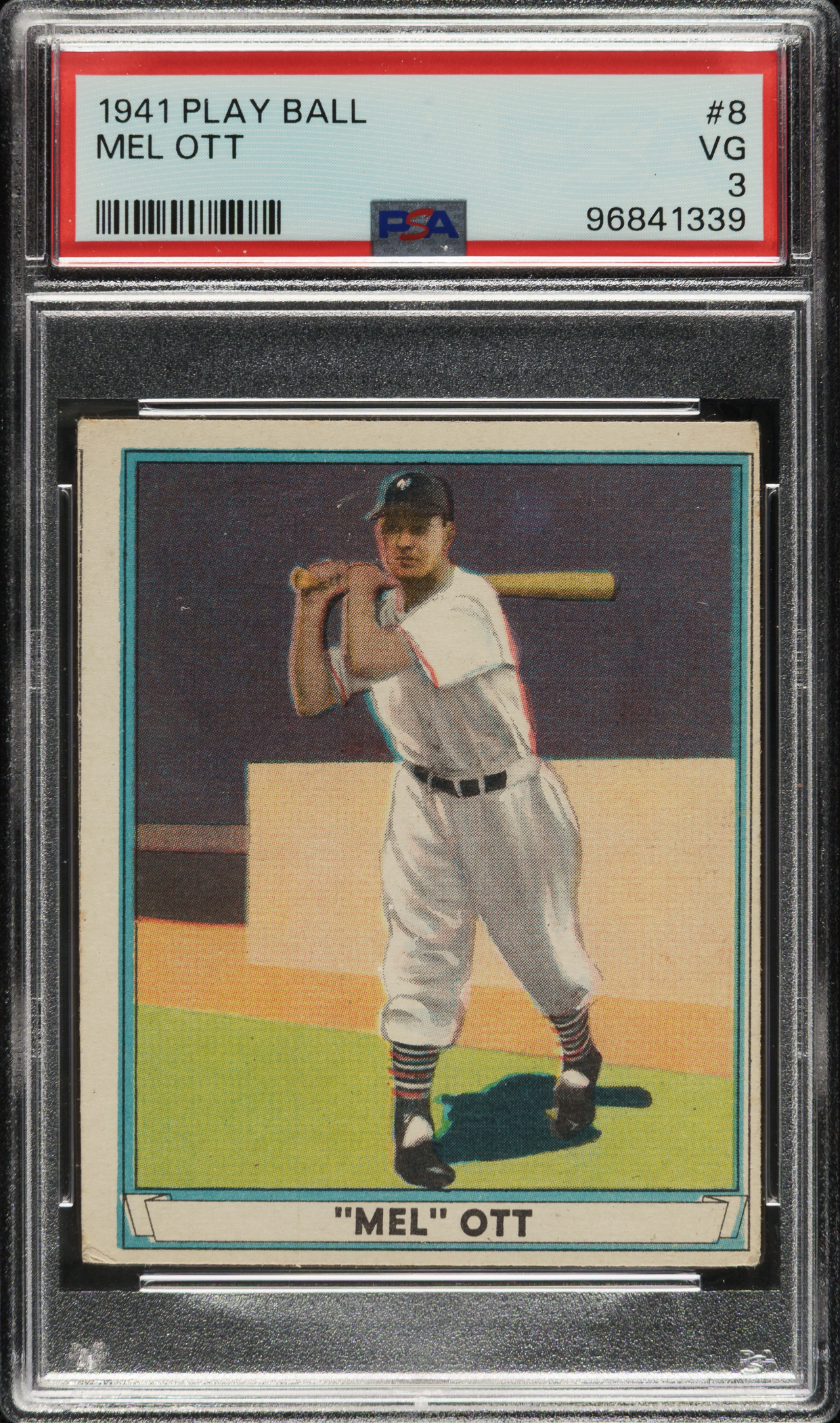 Graded VG 3 by PSA. New York Giants Hall of Famer Mel Ott.