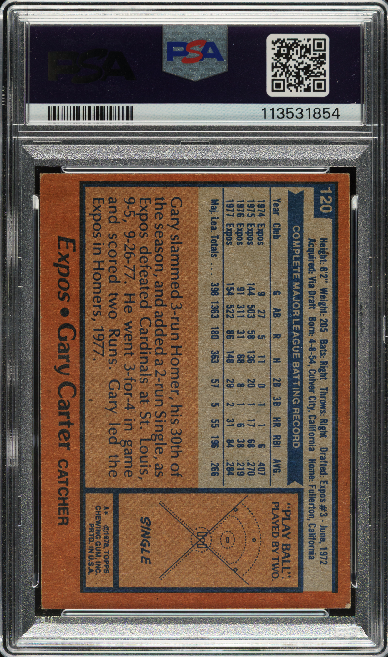 PSA/DNA has encapsulated the card, grading the signature GEM MINT 10 and the card EX 5. Montreal Expos Hall of Famer Gary Carter.