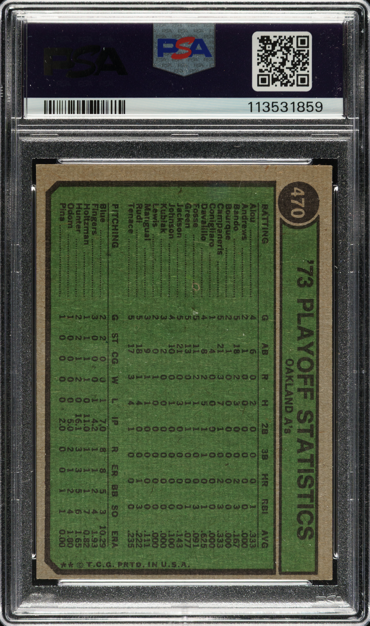 PSA/DNA has encapsulated the card, grading the signature GEM MINT 10 and the card EX-MT 6. Oakland Athletics Hall of Famer Reggie Jackson.