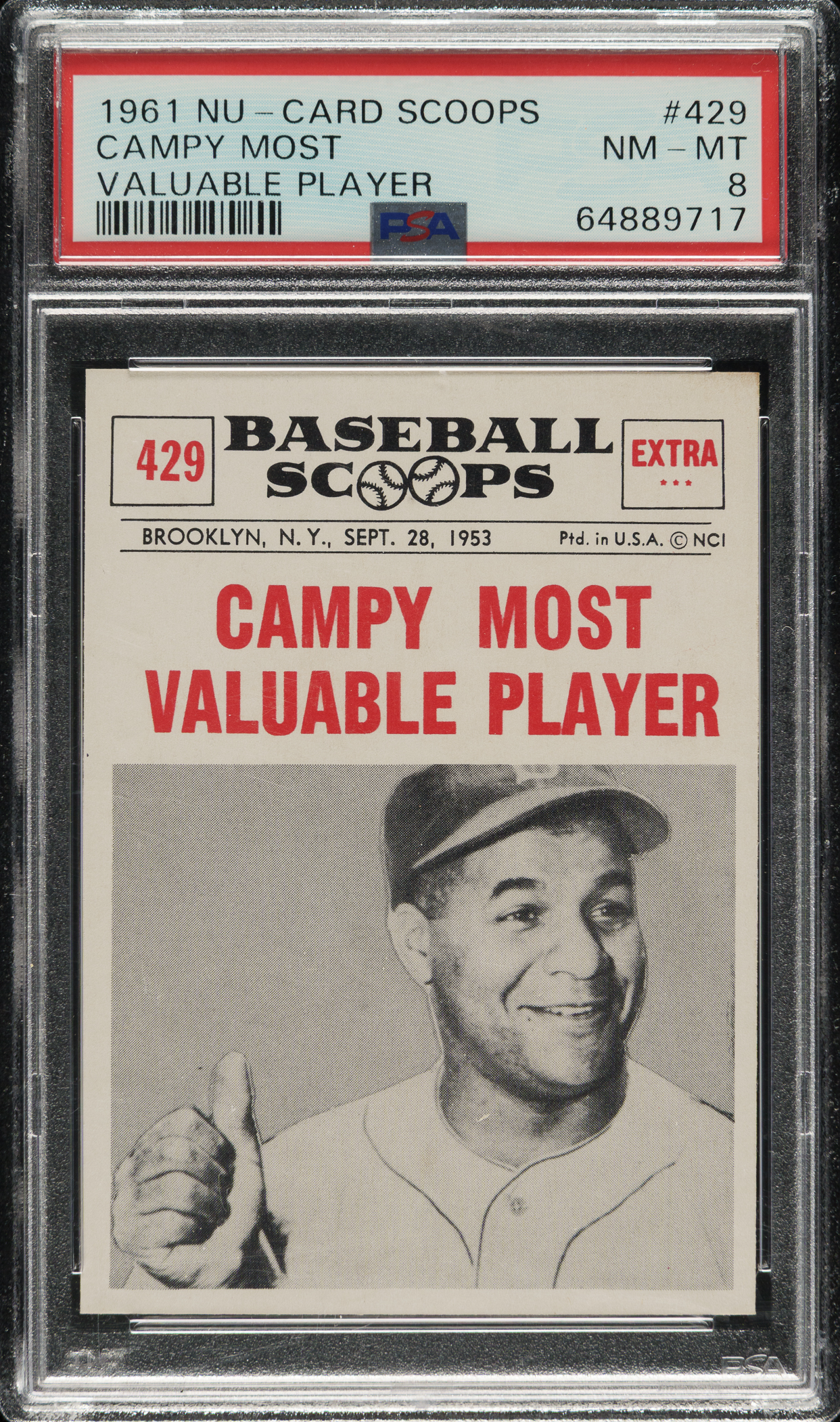 Graded NM-MT 8 by PSA. Brooklyn Dodgers Hall of Famer Roy Campanella.