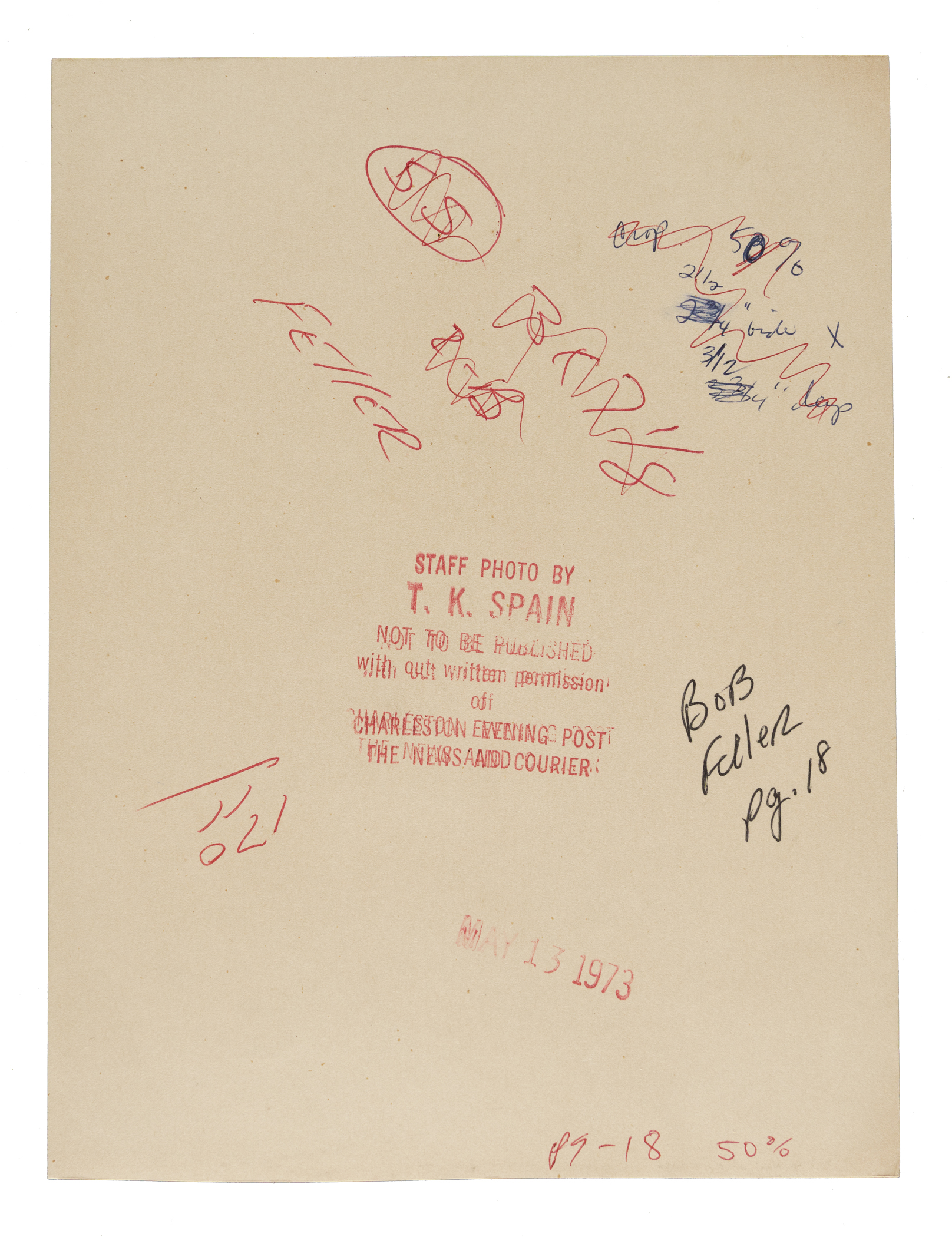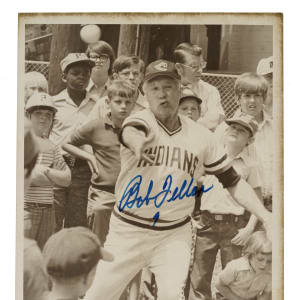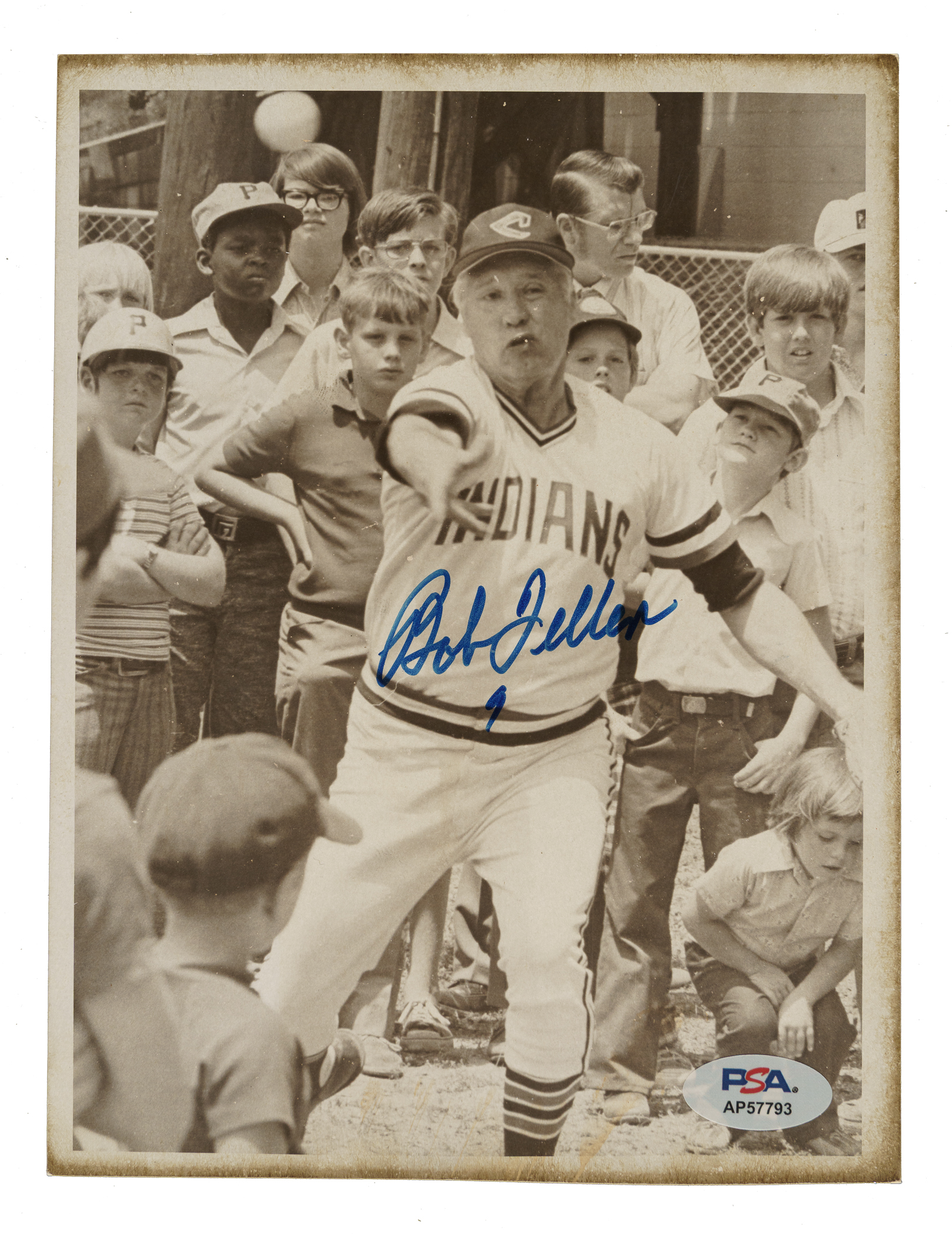 Cleveland Indians Hall of Famer Bob Feller signed photograph. Total dimensions: 5-5/8 x 7-1/2 Inches. PSA/DNA certification sticker is affixed to the photograph.
