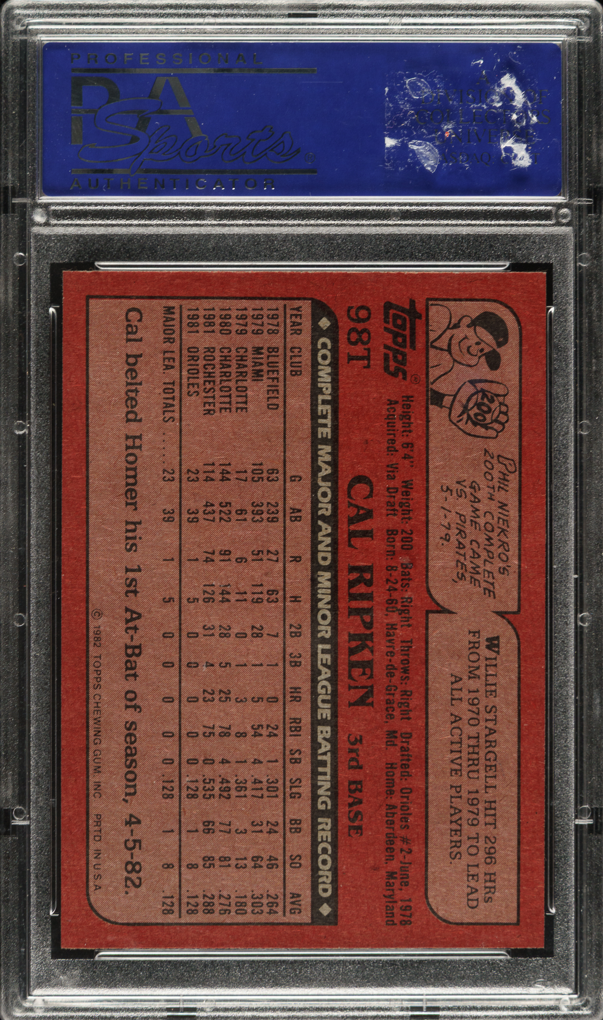 Graded MINT 9 by PSA. Baltimore Orioles Hall of Famer Cal Ripken Jr.