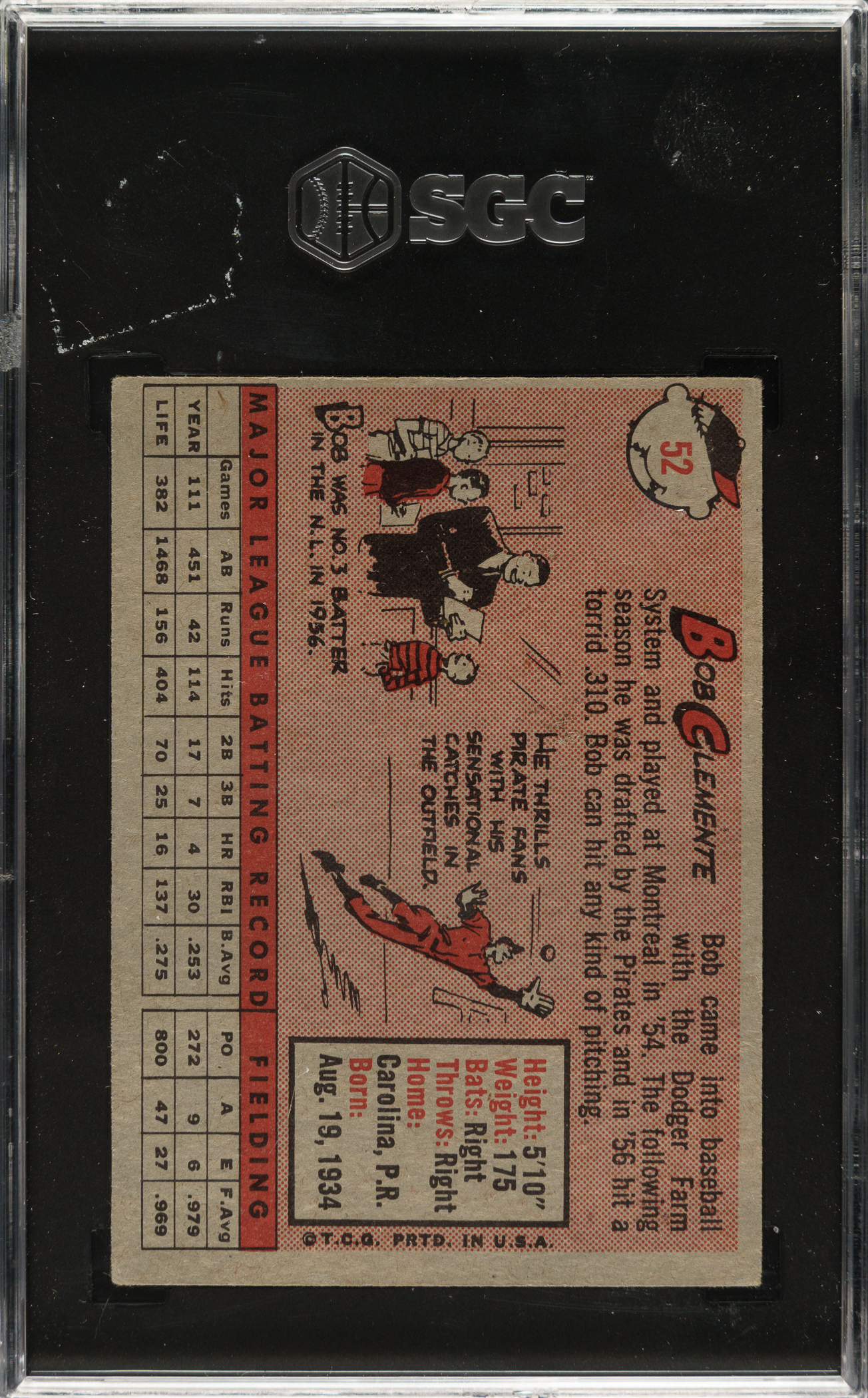 Graded VG/EX 4 by SGC. Pittsburgh Pirates Hall of Famer Roberto Clemente.