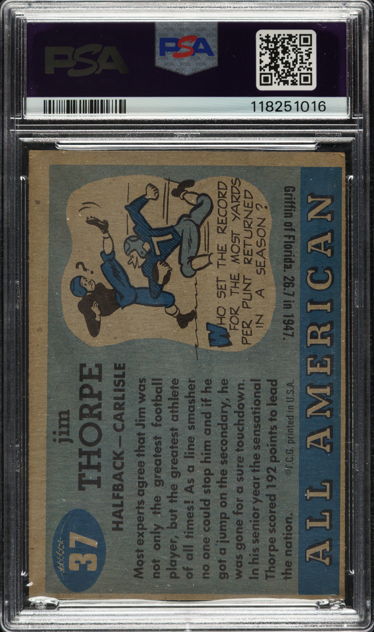 Graded VG-EX 4 by PSA. Football Hall of Famer Jim Thorpe.