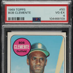 Graded VG-EX 4 by PSA. Pittsburgh Pirates Hall of Famer Roberto Clemente.
