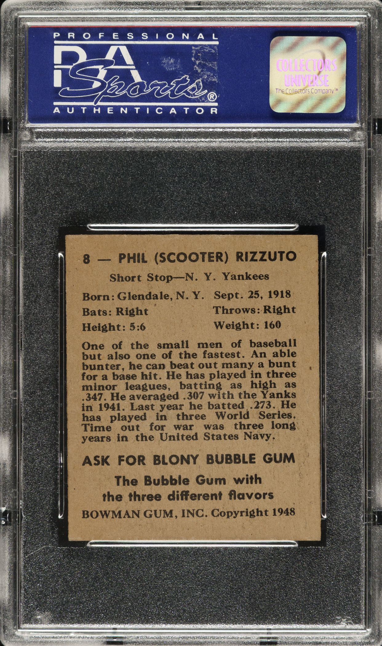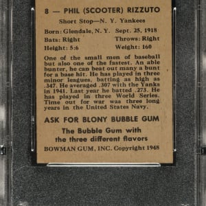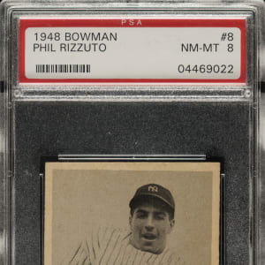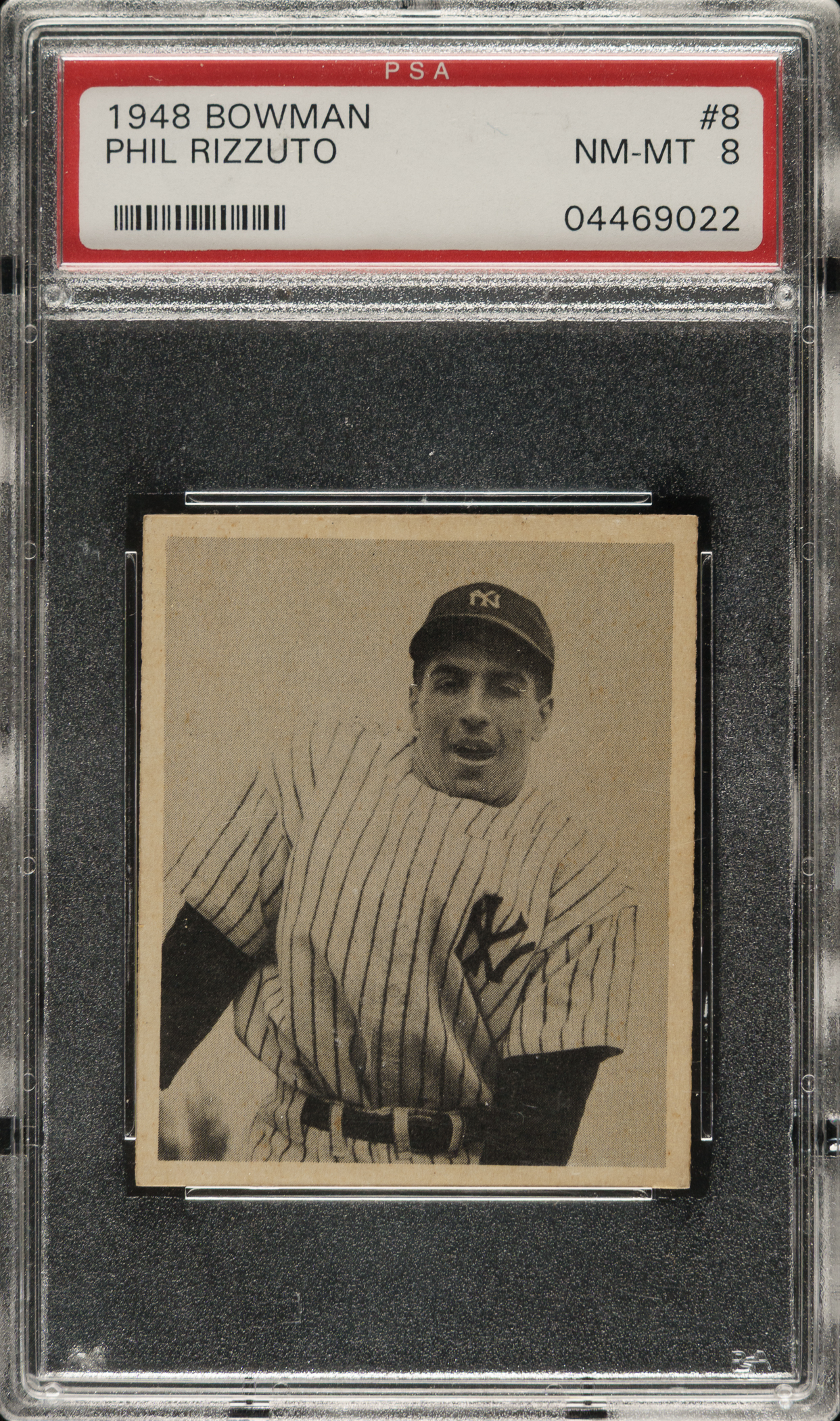Graded NM-MT 8 by PSA. New York Yankees Hall of Famer Phil Rizzuto.