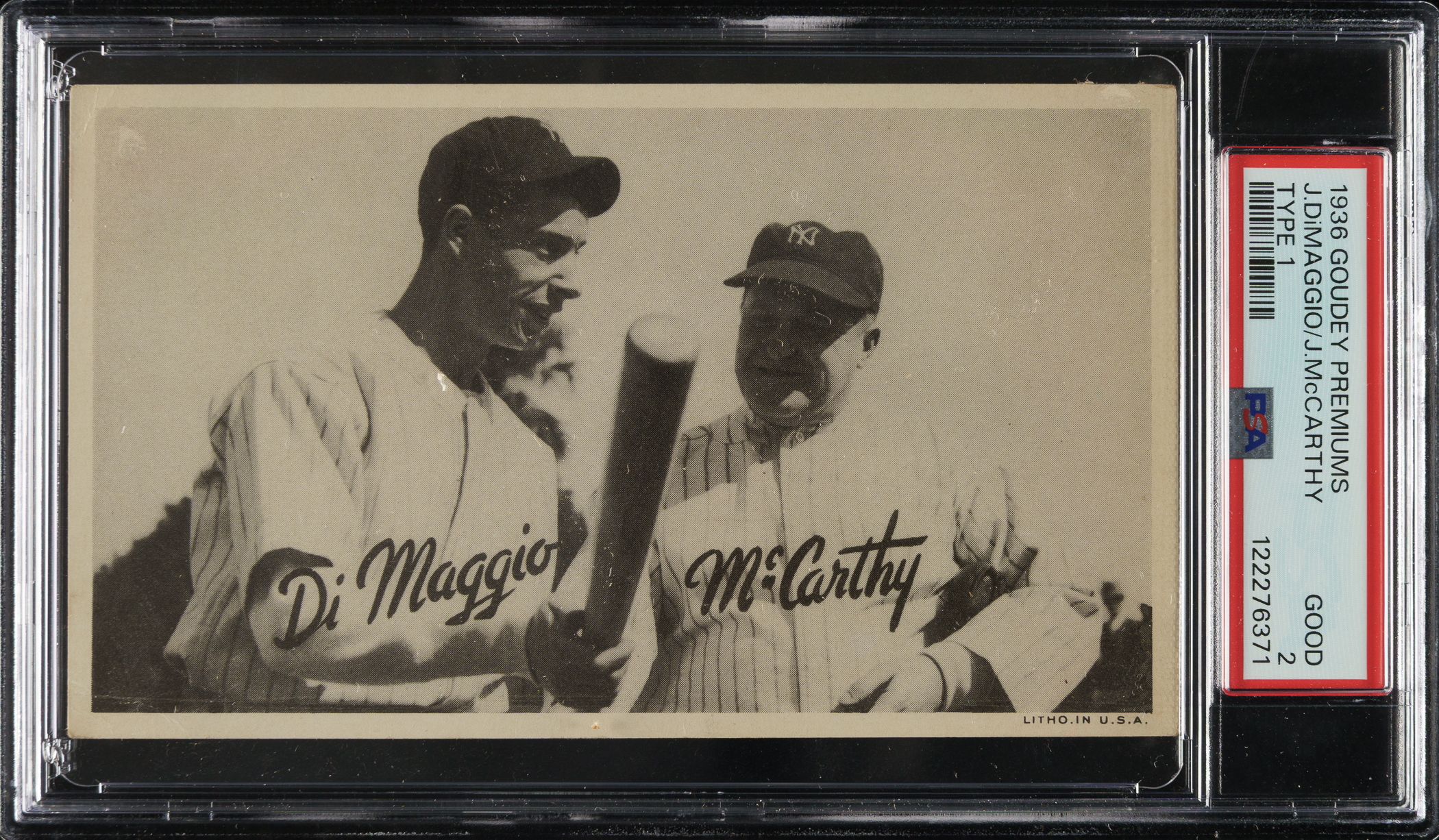 Graded GOOD 2 by PSA. New York Yankees Hall of Famers Joe DiMaggio and Joe McCarthy.