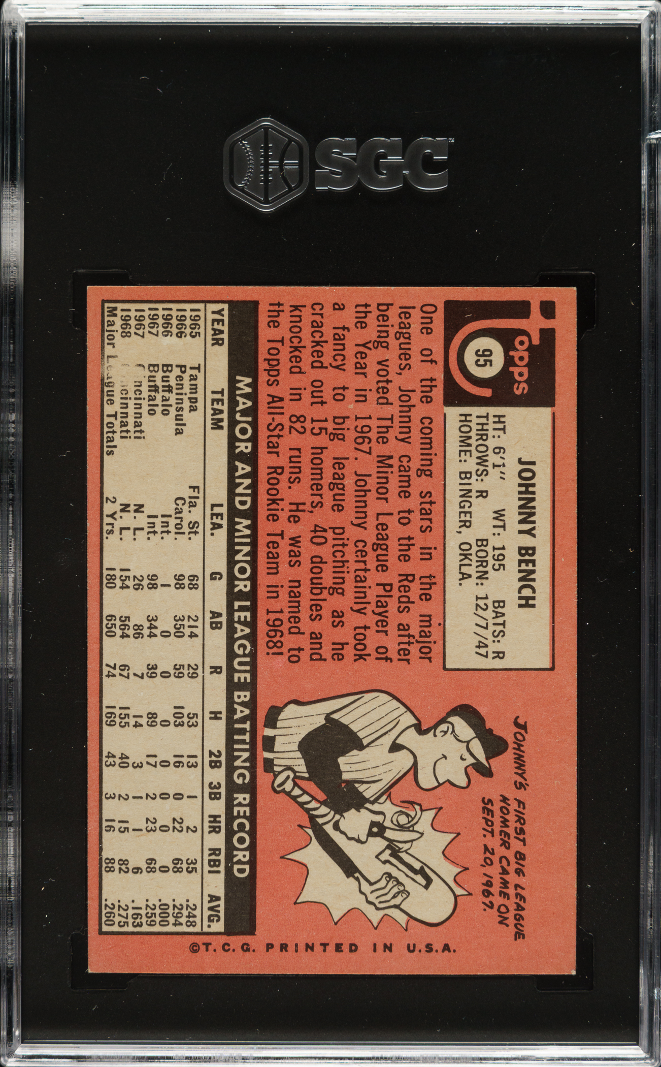 Lot # 3145: 1969 Topps #95 Johnny Bench SGC EX 5