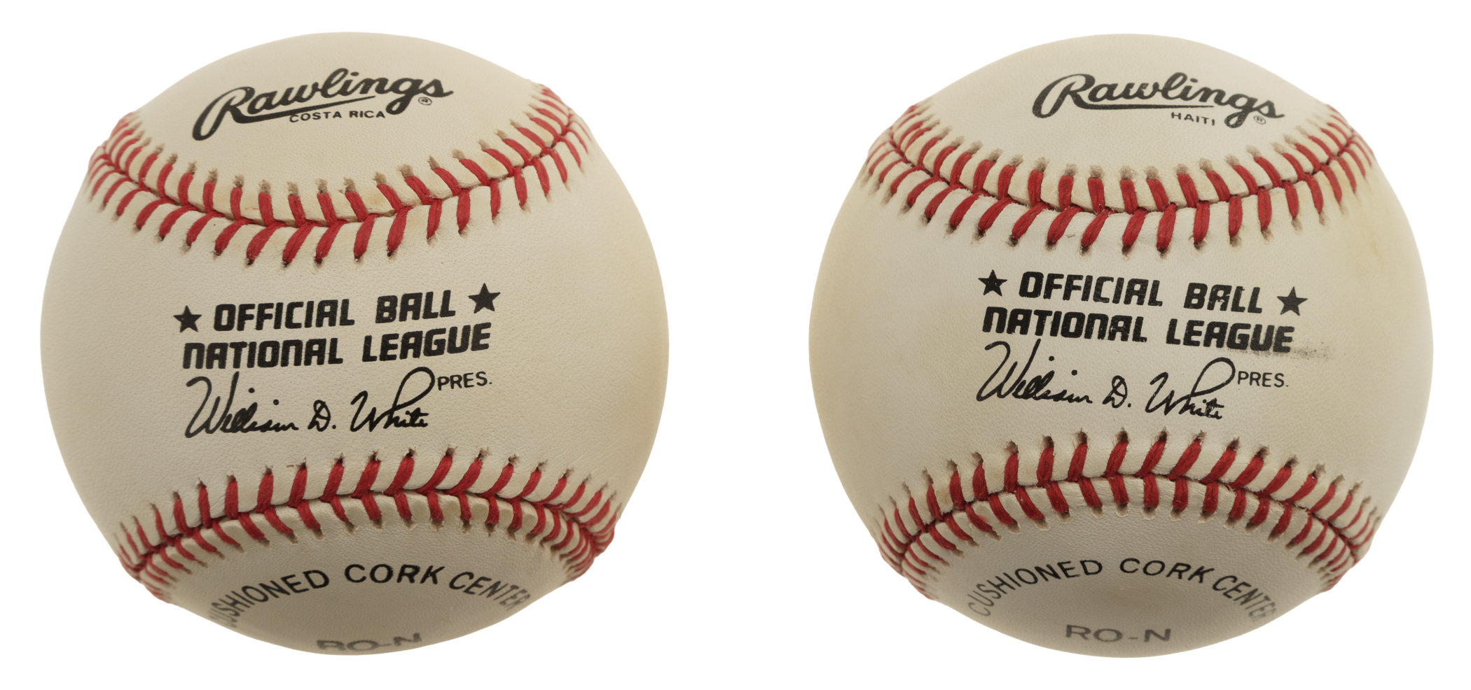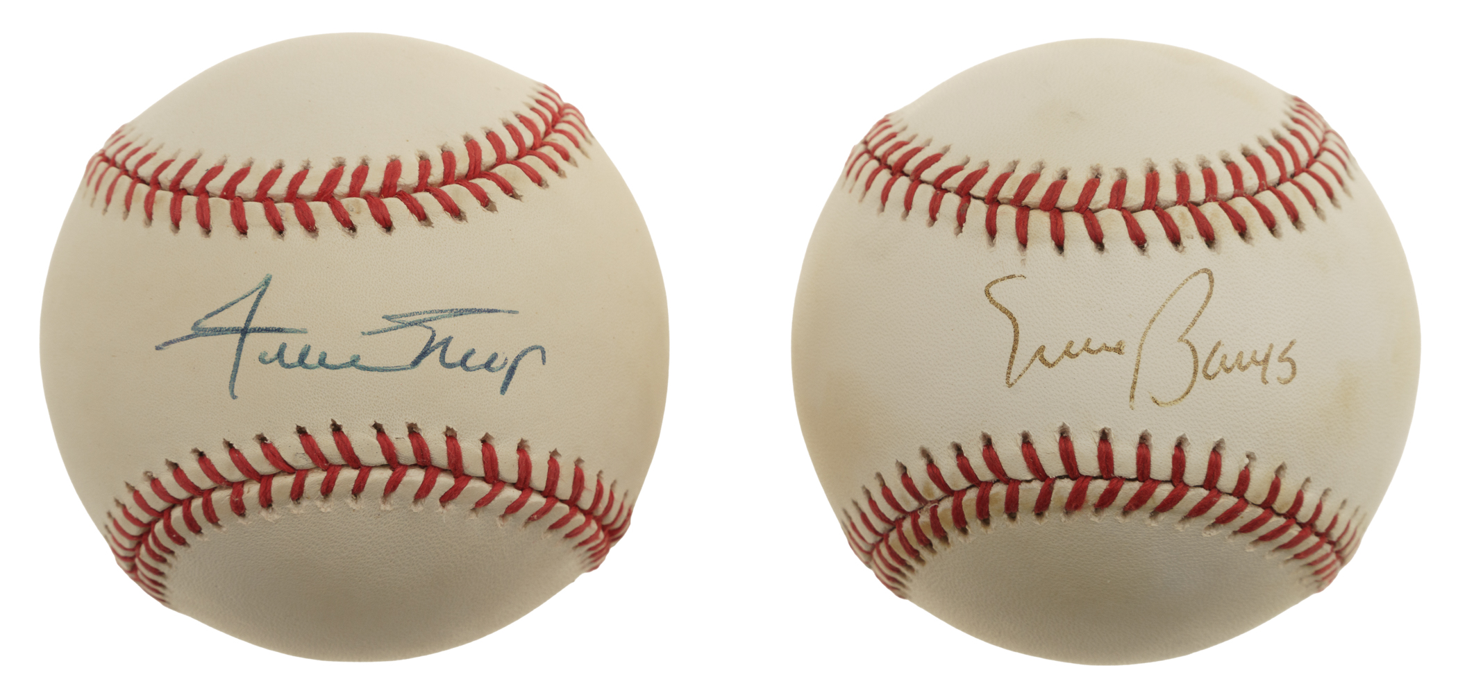 Pair of single-signed baseballs, featuring San Francisco Giants and Chicago Cubs Hall of Famers Willie Mays and Ernie Banks. Total: 2 baseballs. Auction LOA from James Spence/JSA. The size/weight of this item requires that there will be an additional shipping charge for this lot.