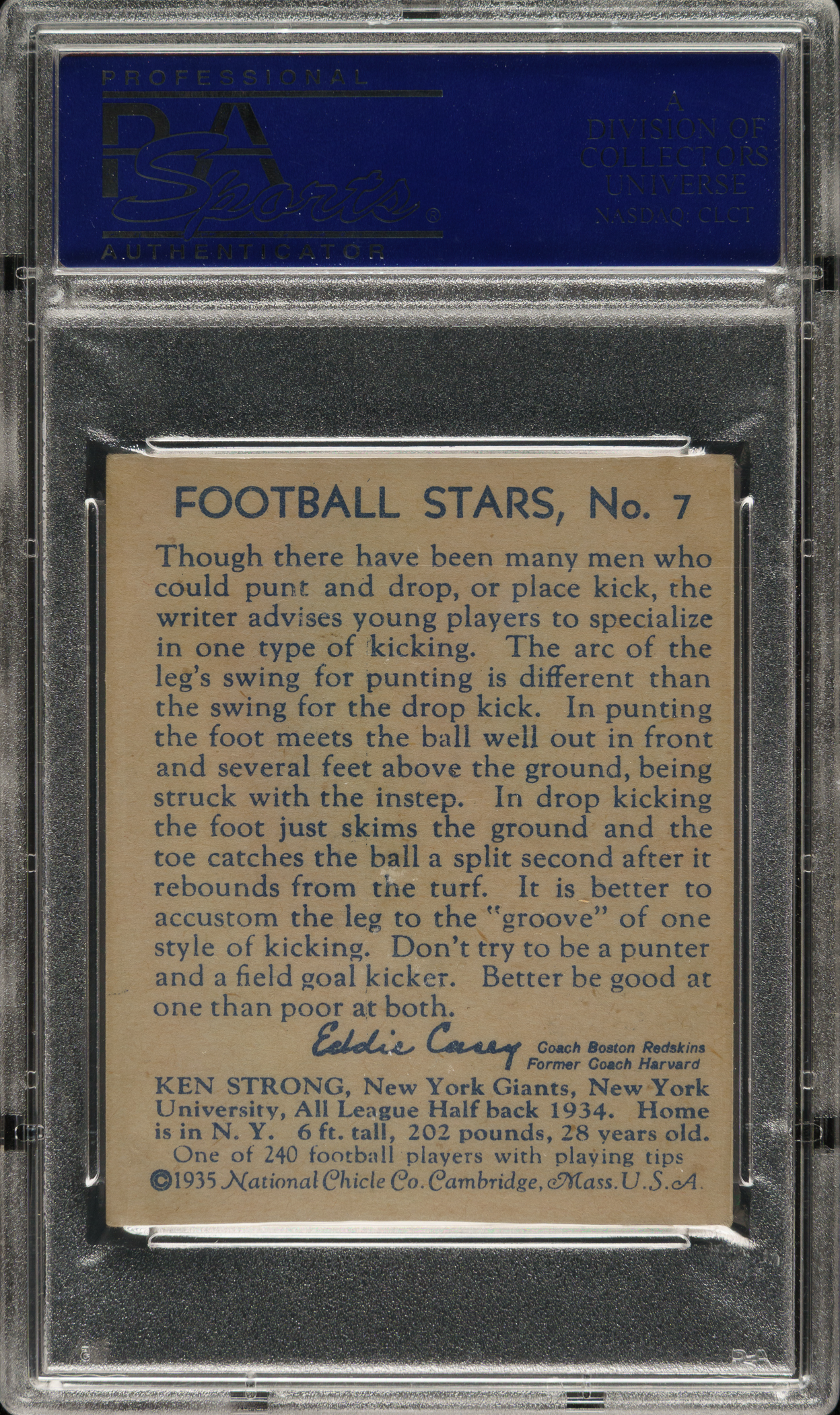Graded EX 5 by PSA. New York Giants Hall of Famer Ken Strong.
